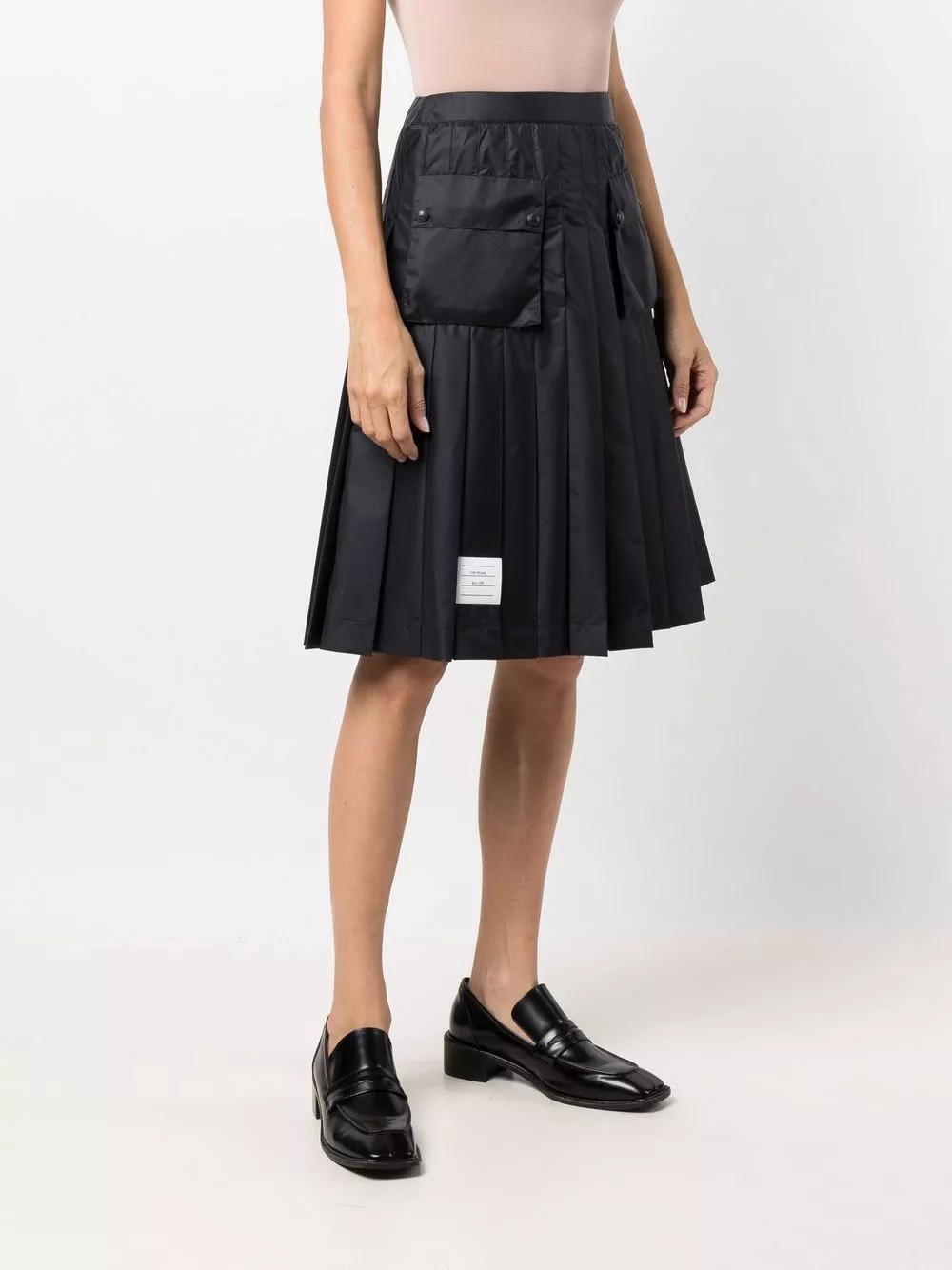 Thom Browne fuses its signature collegiate style with workwear-inspired details to transform the silhouette of this skirt. Fully pleated as a homage to school uniforms, it has two cargo pockets to the front for a practical sense.