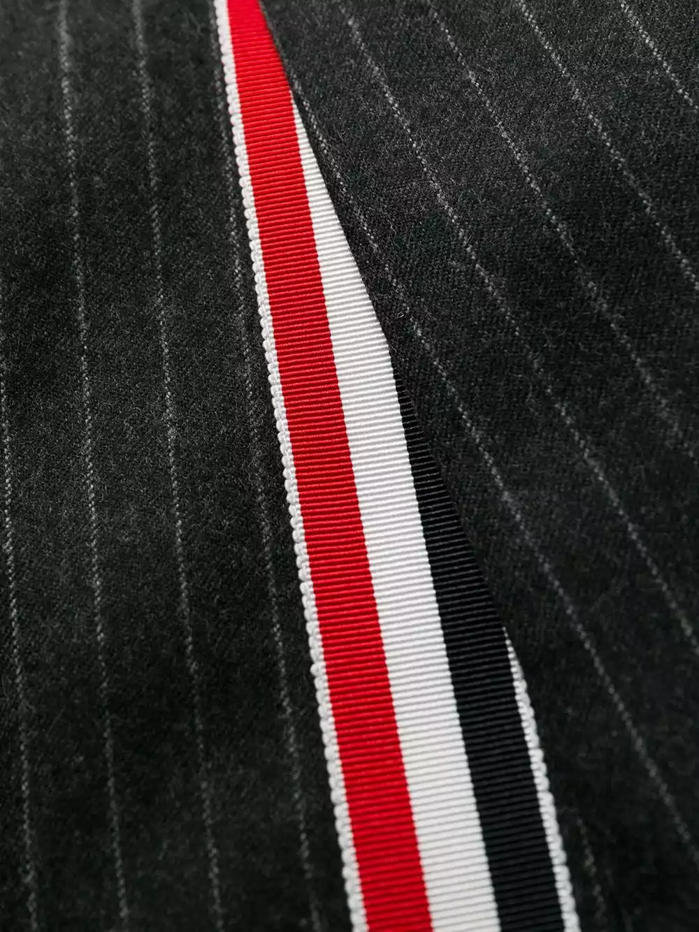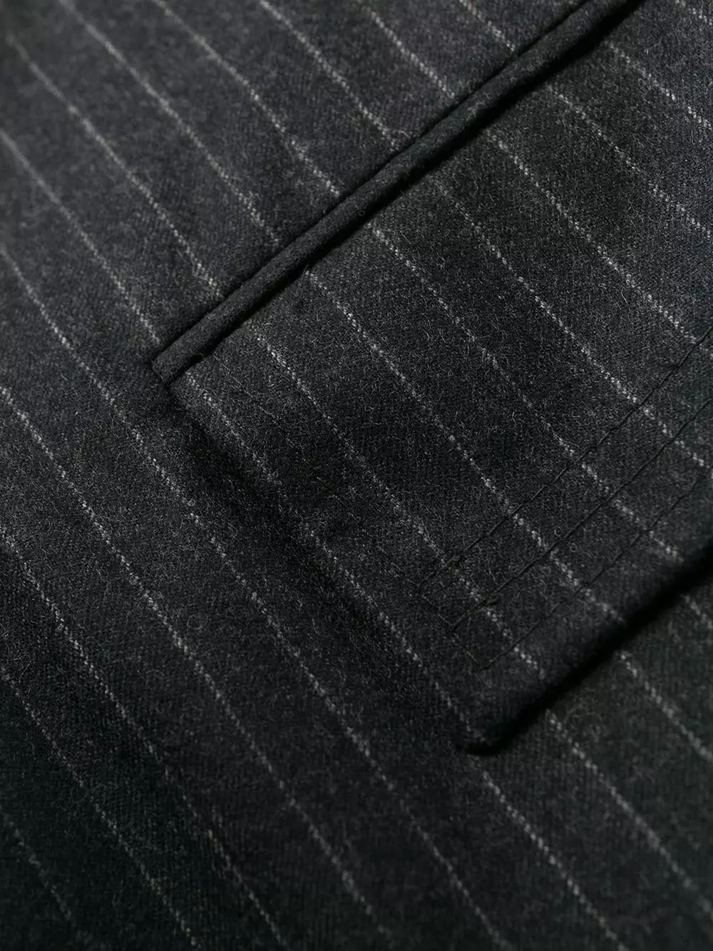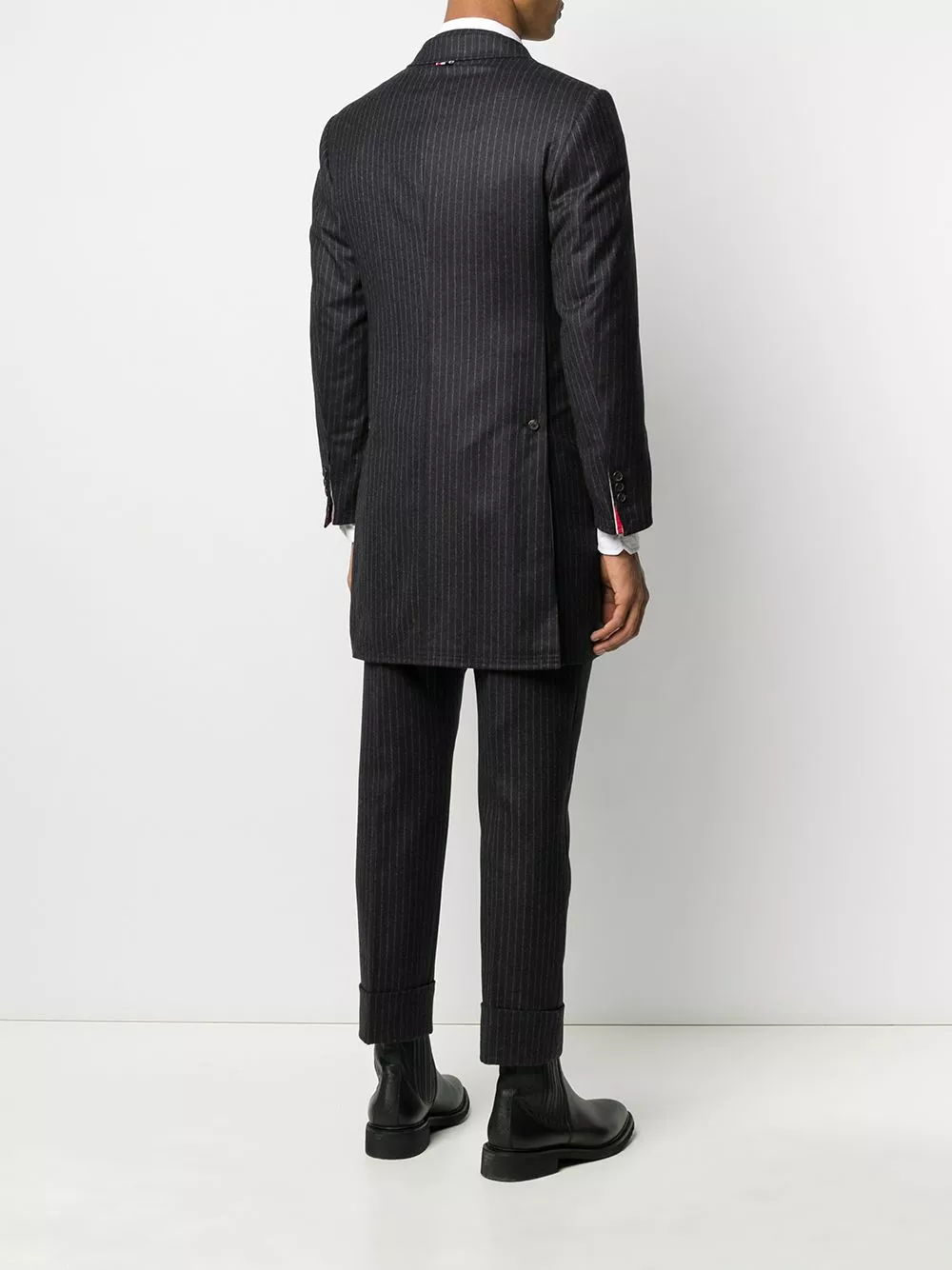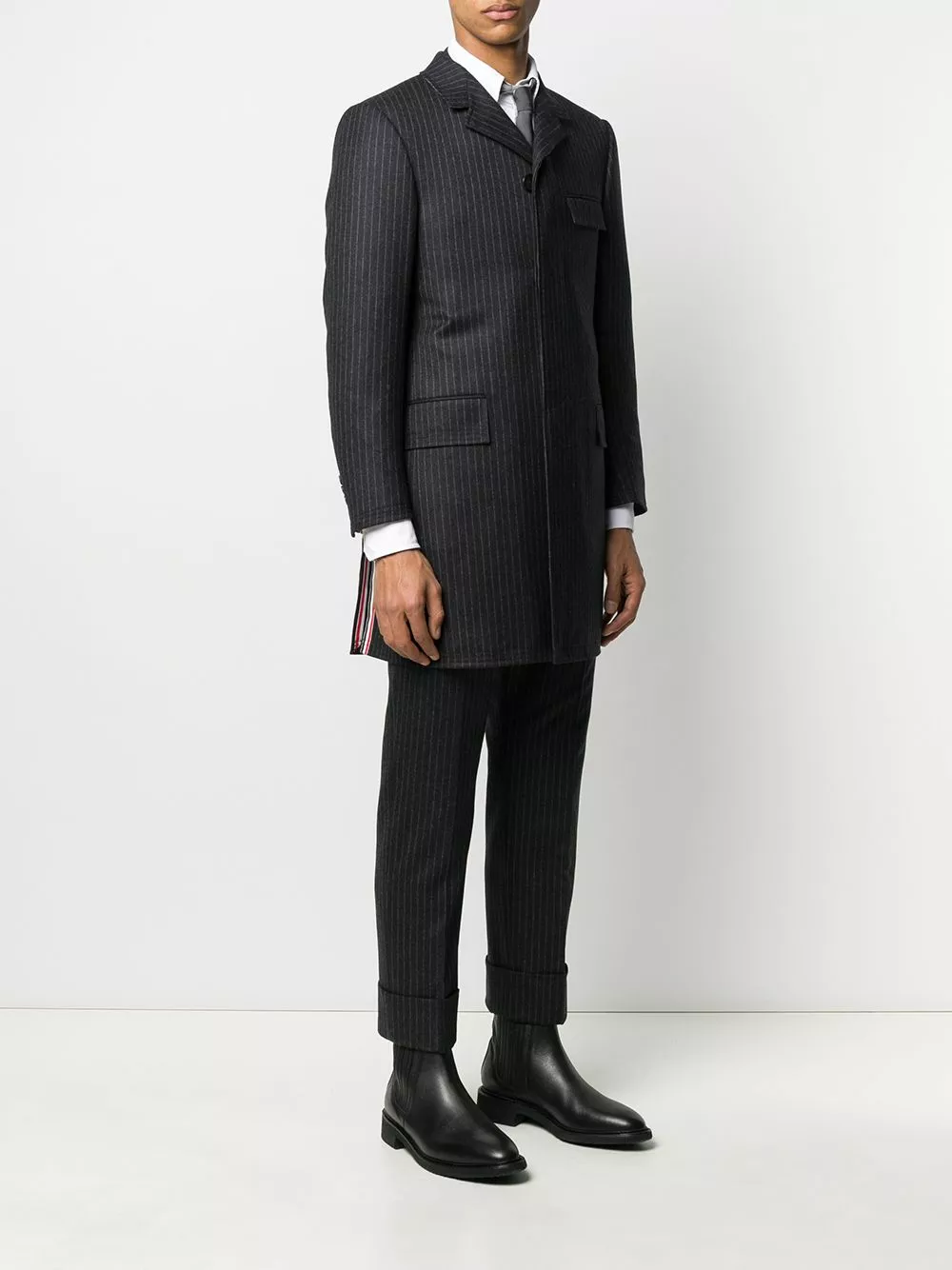 Everyone needs a formal coat and this one is calling your name. Designed in the style of a blazer, this dark grey wool chalk-stripe Chesterfield overcoat from Thom Browne offers the perfect balance of practicality and dapper style. Emulate the designer’s style with ease. Featuring notched lapels, a front button fastening, a chest pocket, long sleeves, two front pockets, button cuffs, a striped pattern and a double vent to the rear.