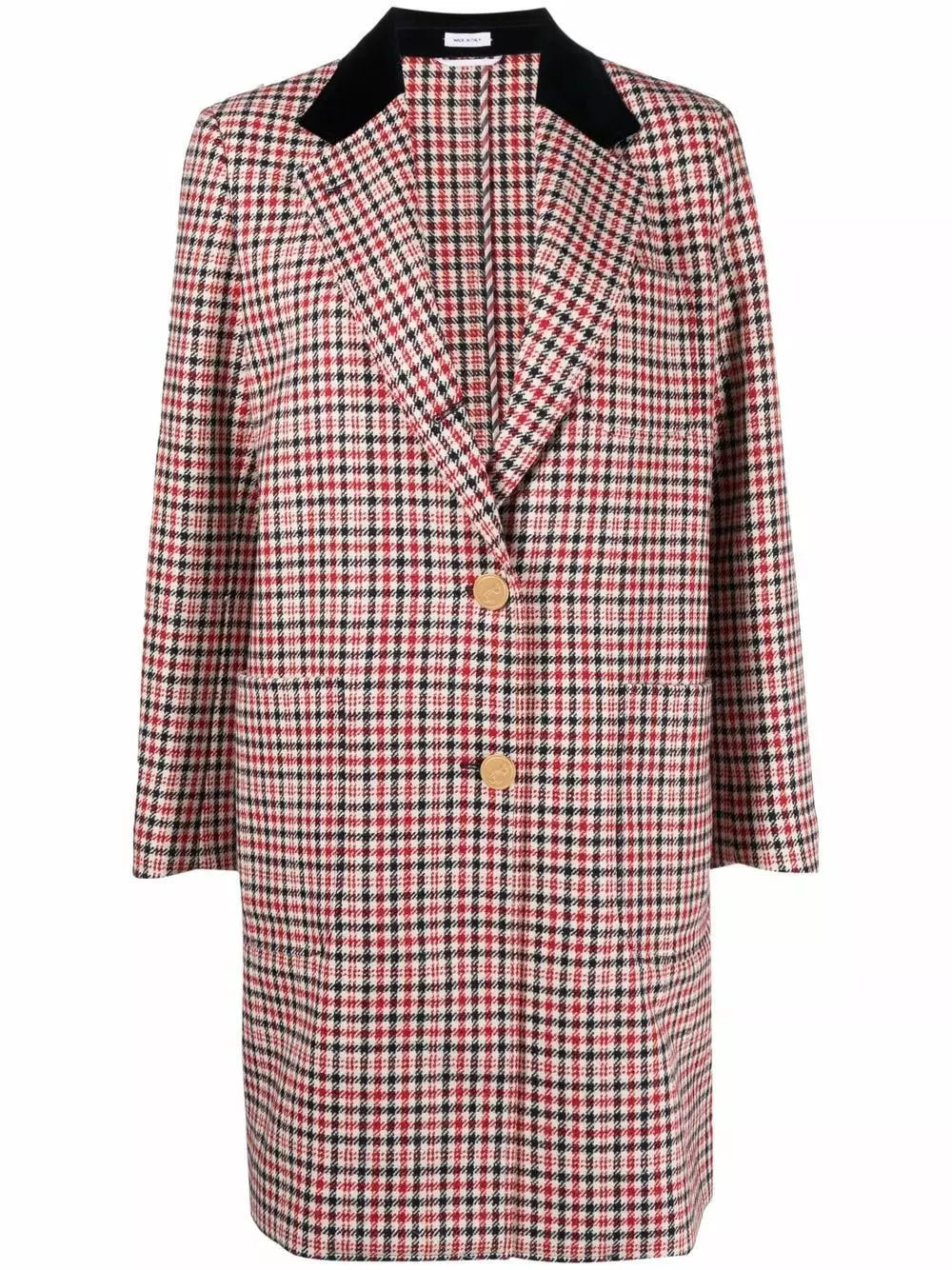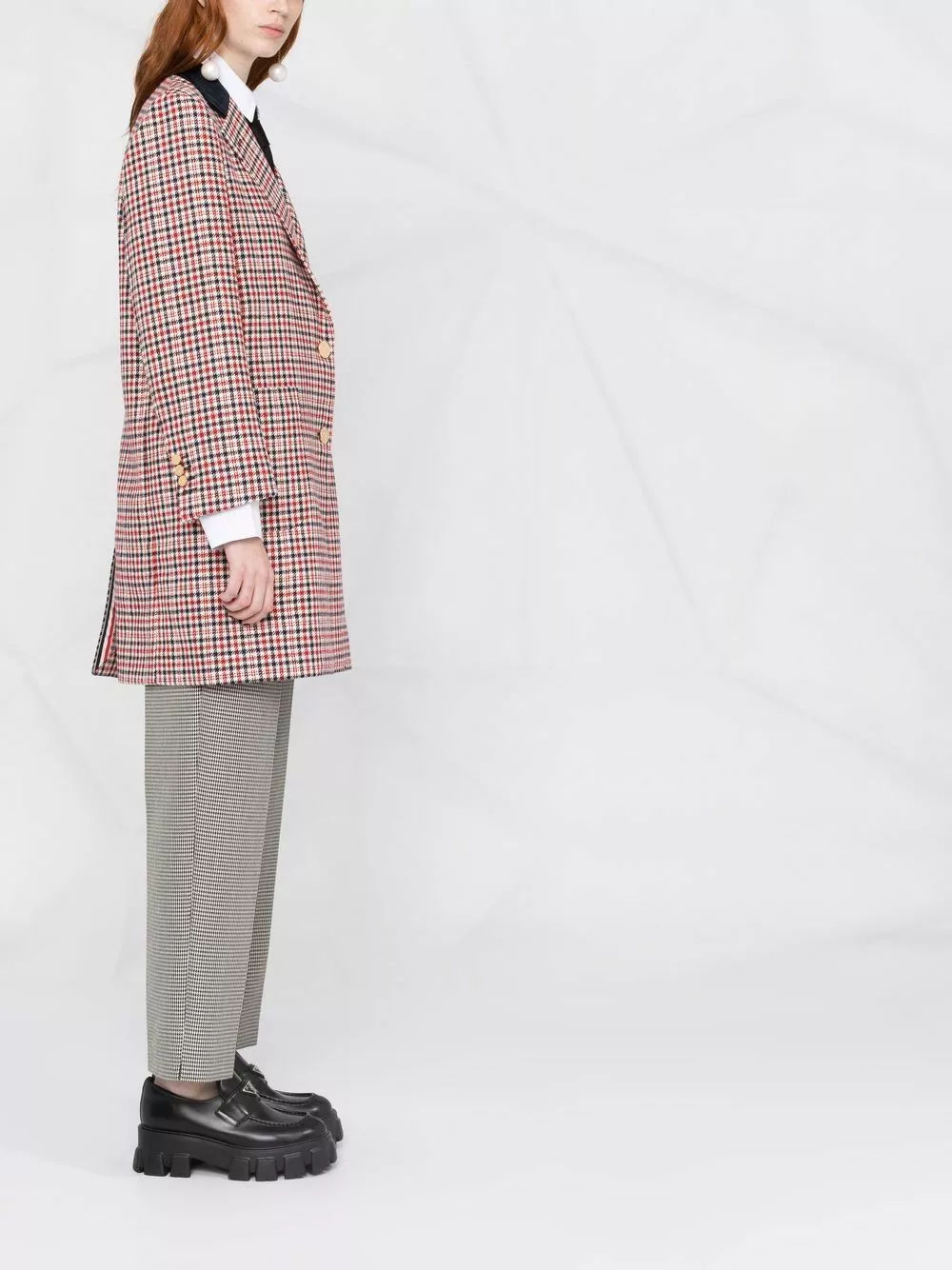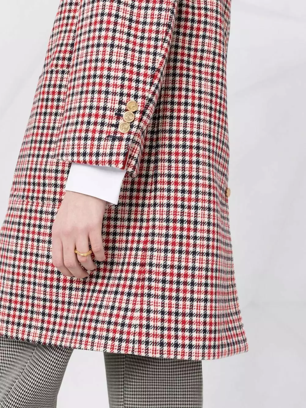 A radical pioneer in the world of tailoring, each collection from the New York-based label Thom Browne has transformed the way contemporary wardrobes look. The latest SS22 season has presented a new take on classic separates, like this check button-front coat that comes finished with the brand’s signature red, white and blue colourway.