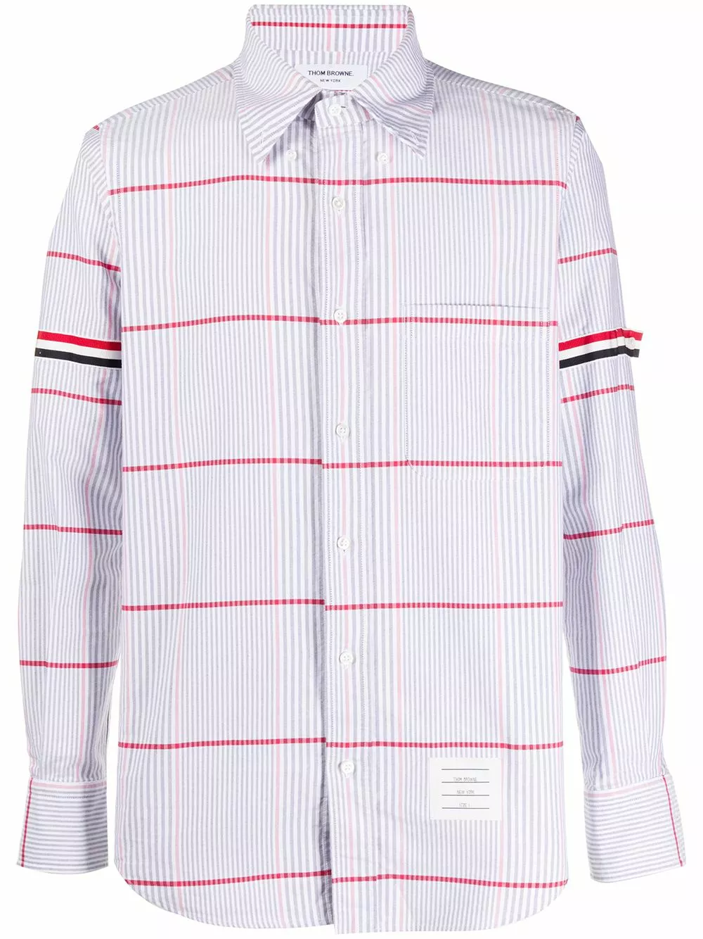 No one does preppy tailoring like Thom Browne. This oversized check oxford shirt showcases the brands signature motifs. With red, white and blue stripes and a check print, it’s the quintessential Thom Brown piece. Featuring a check print, a classic collar, a curved hem, a button fastening, RWB stripe and a signature logo patch.
