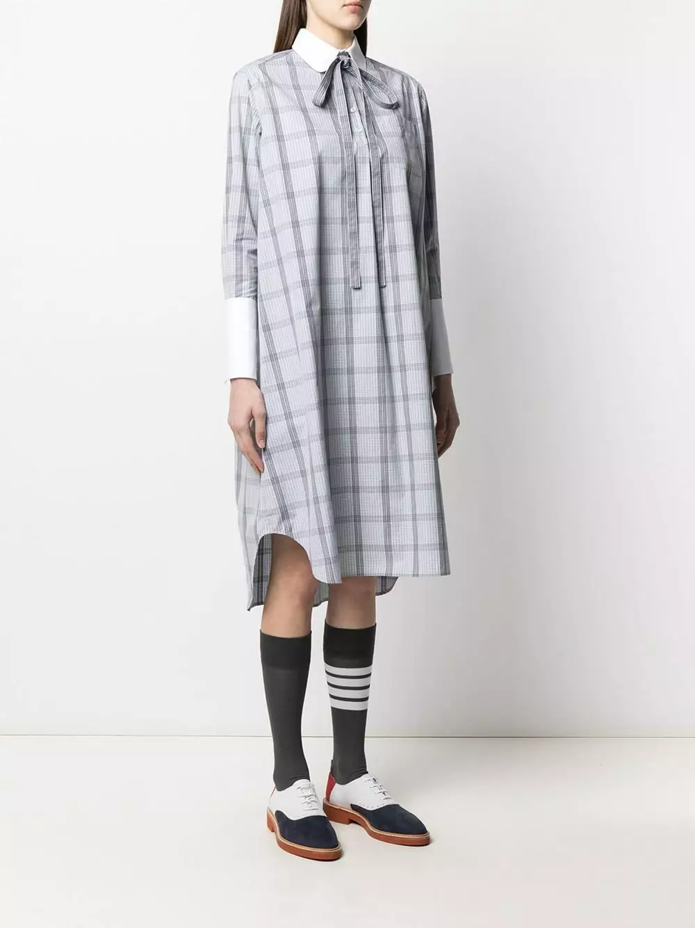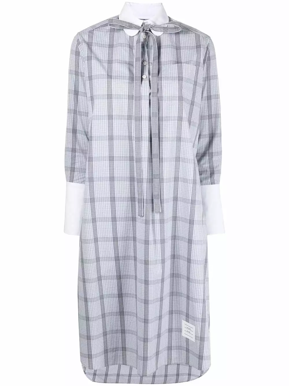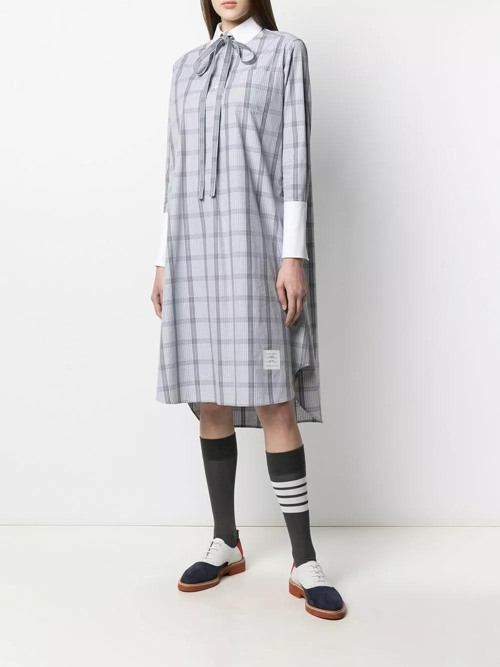 Meetings are looking a lot more exciting when it means that you can wear your new Thom Browne dress. In a shirt style, with a front tie fastening and logo patch to the side, you’ll be showing off your style smarts. Take a bow for this great choice.