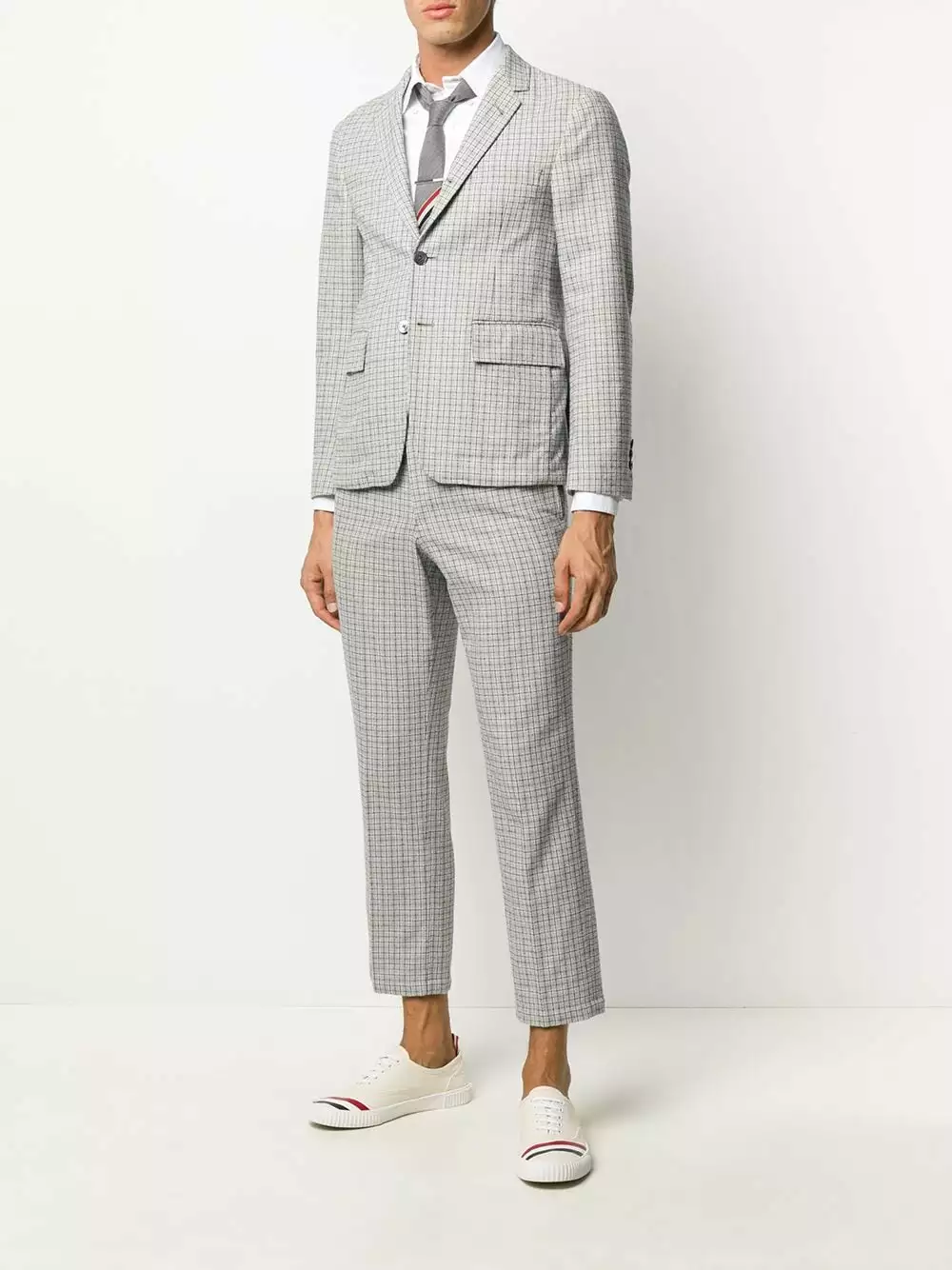 Your gentleman’s wardrobe won’t be complete without one of these. Designed with a classic check pattern, this single-breasted blazer from Thom Browne will smarten up your look in a second. Make room for it.