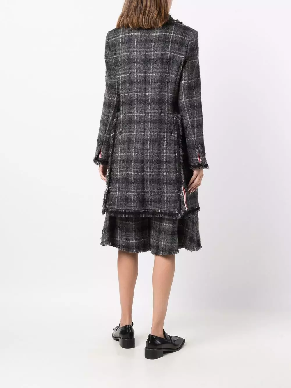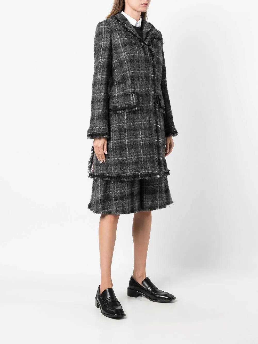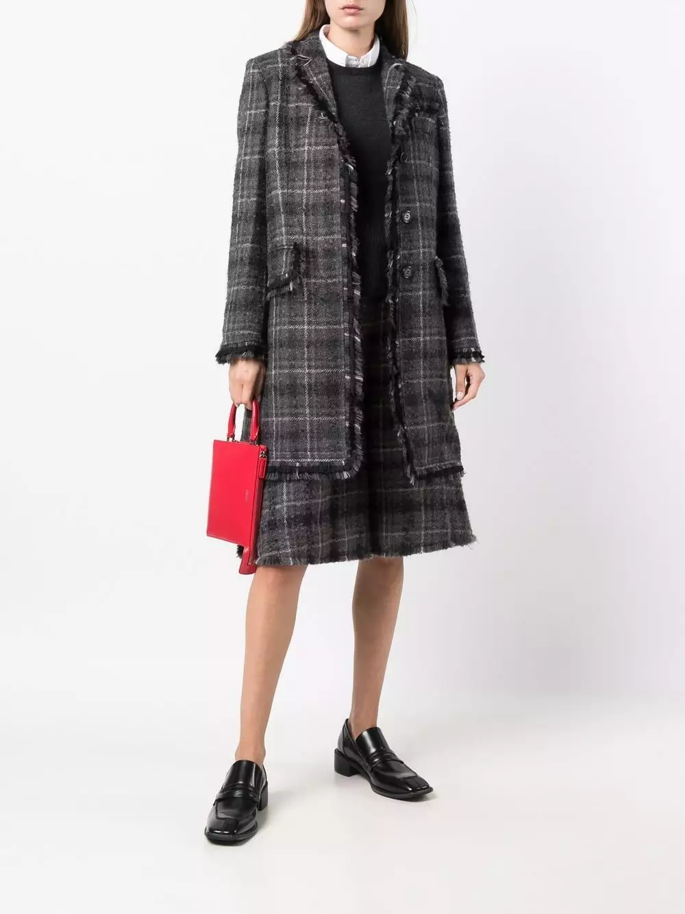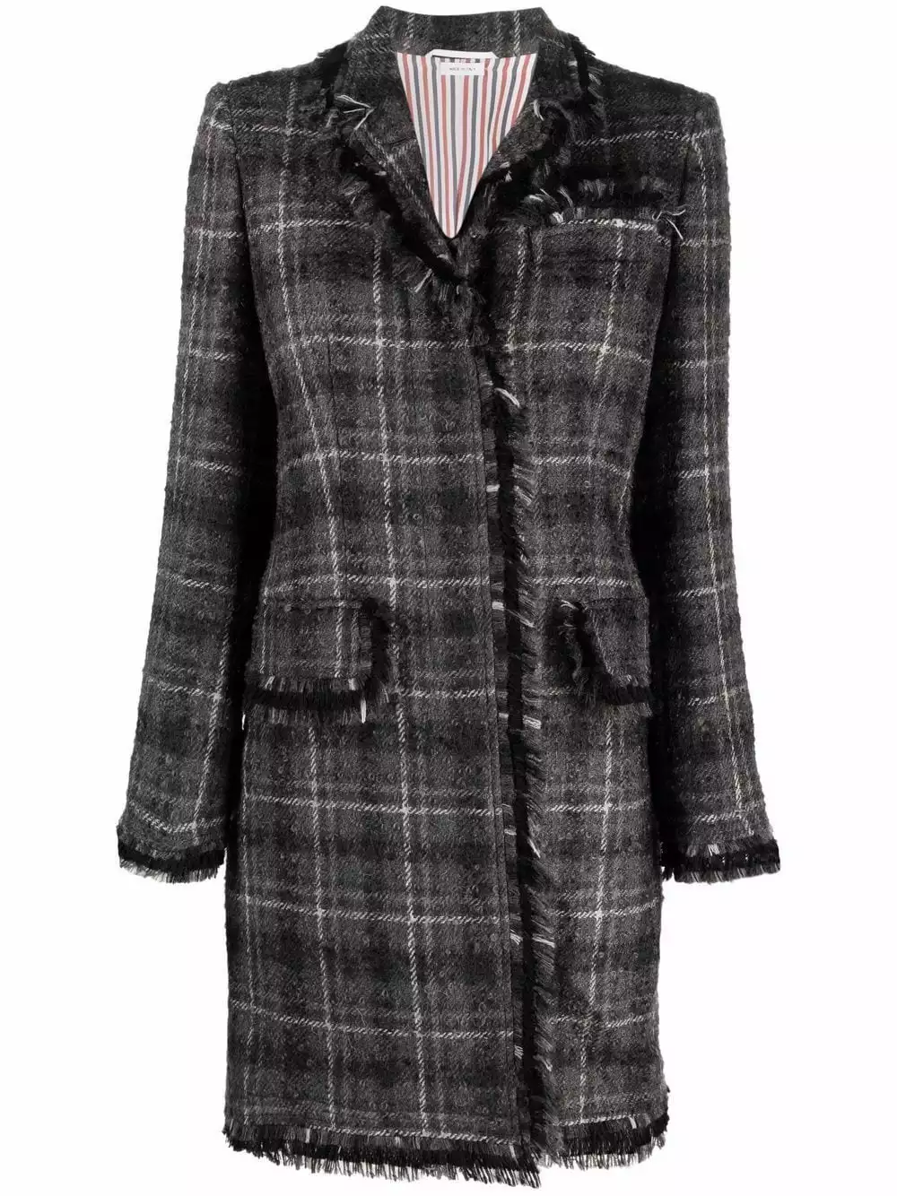Thom Browne takes traditional designs and turns them into something contemporary. Crafted from wool, mohair and silk blend, this single-breasted coat features a plaid check pattern and is detailed with frayed edges for a classy yet modern look.
