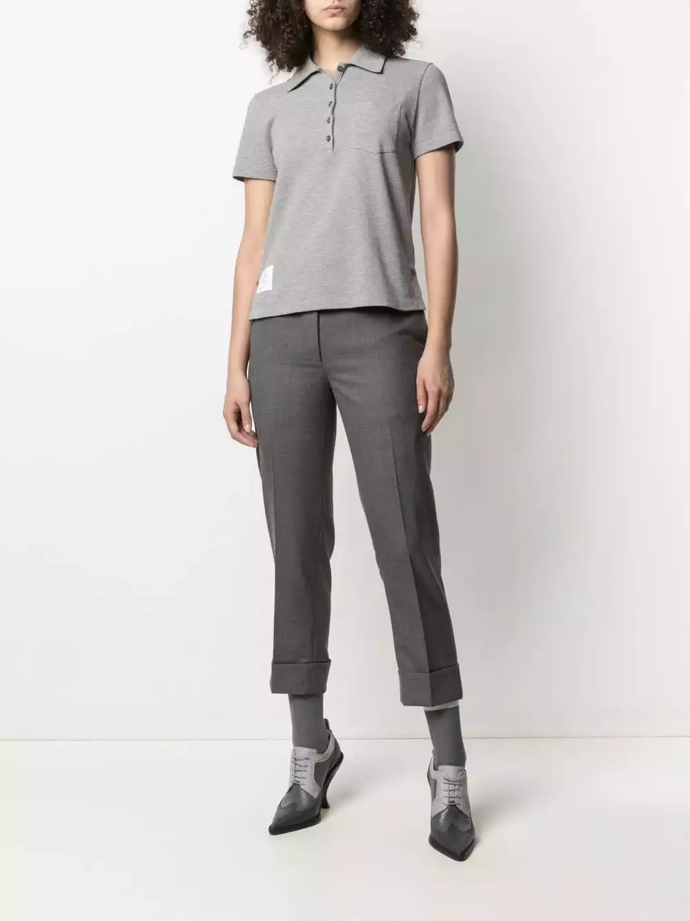 Make the polo shirt cool again. Constructed from soft cotton, this chest patch pocket polo shirt from Thom Browne is the right one to do so. Simple is key.Â