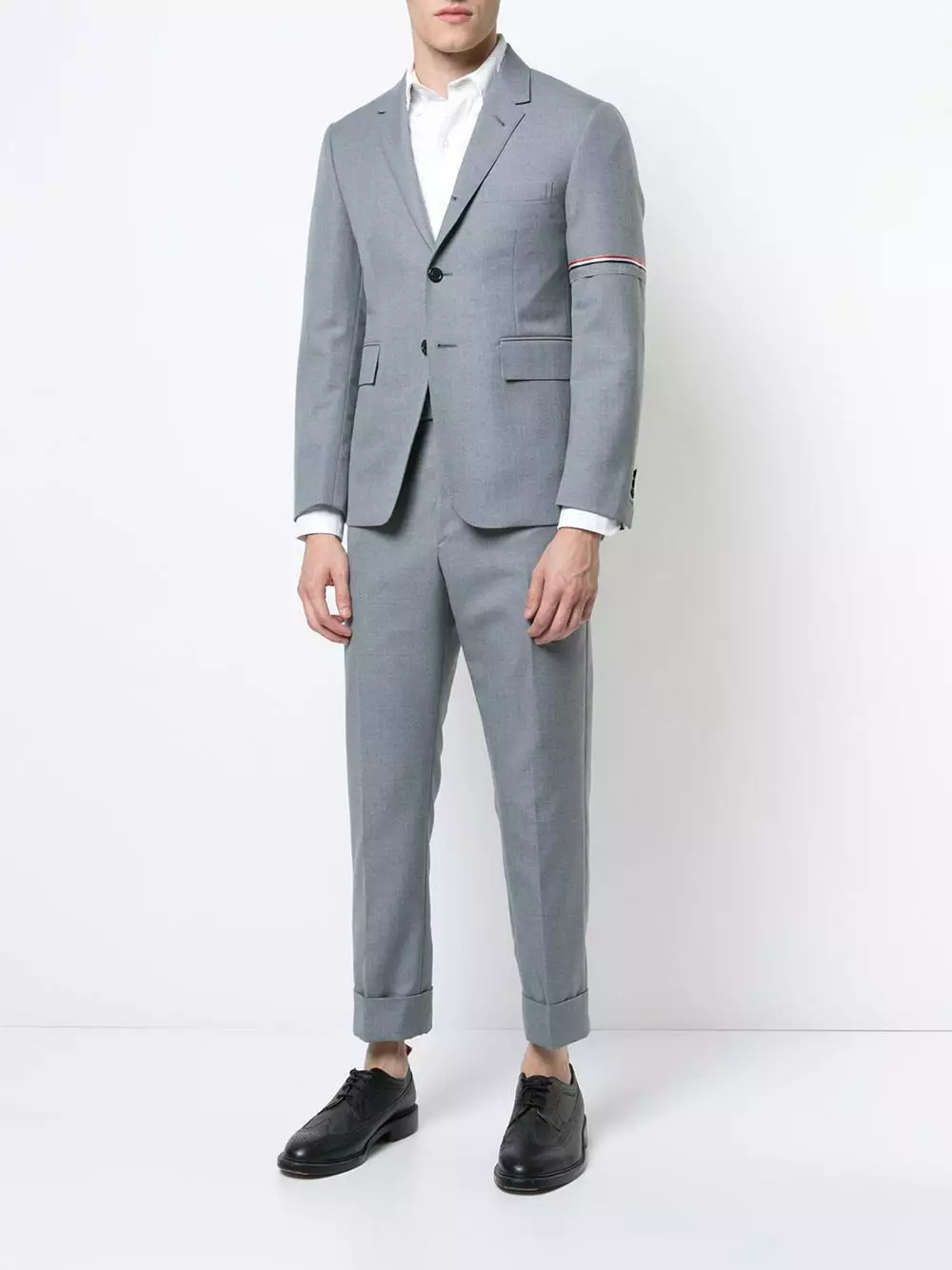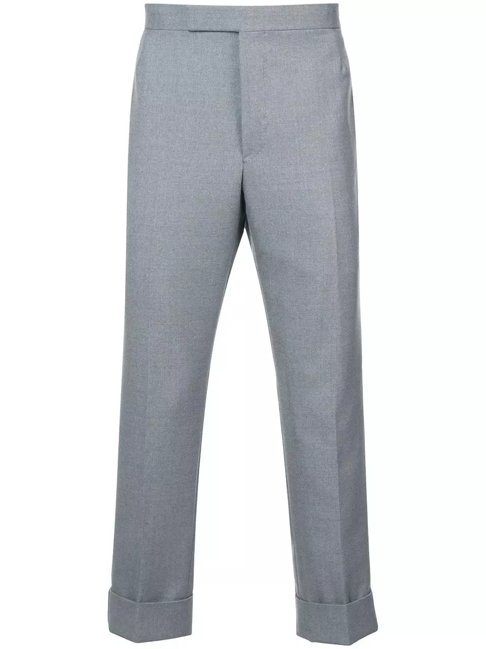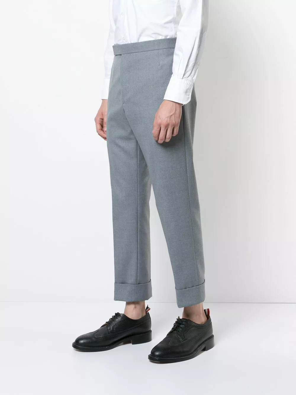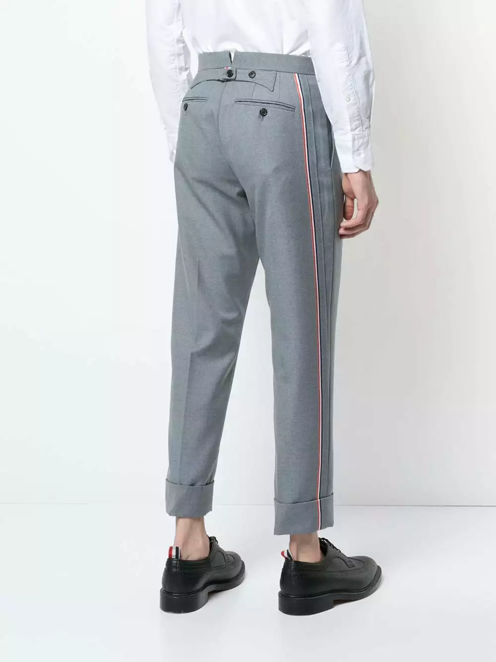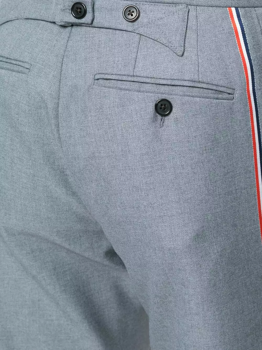 Medium Grey wool blend Classic Backstrap Trouser With Red, White And Blue Selvedge In School Uniform Twill from Thom Browne.