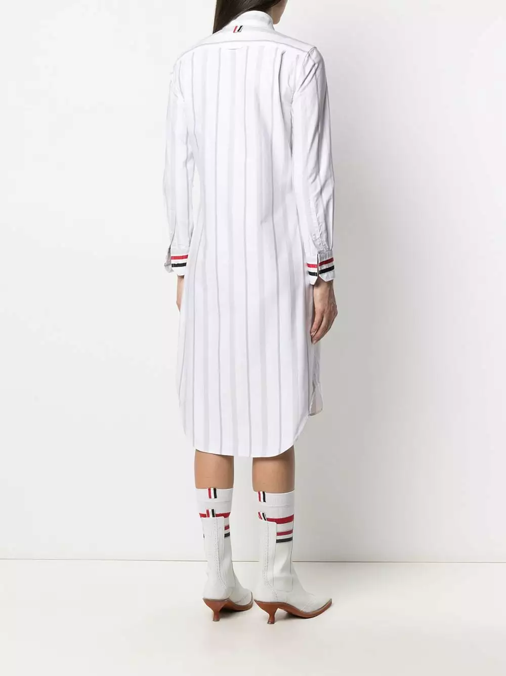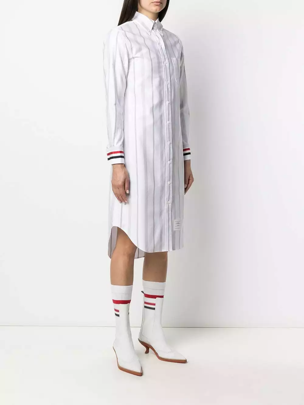 When you think of Thom Browne, their signature stripe details always come to mind. ‘Stripe’ a pose, in this mid-length piece. Best dressed in the room? It’s you…every time.