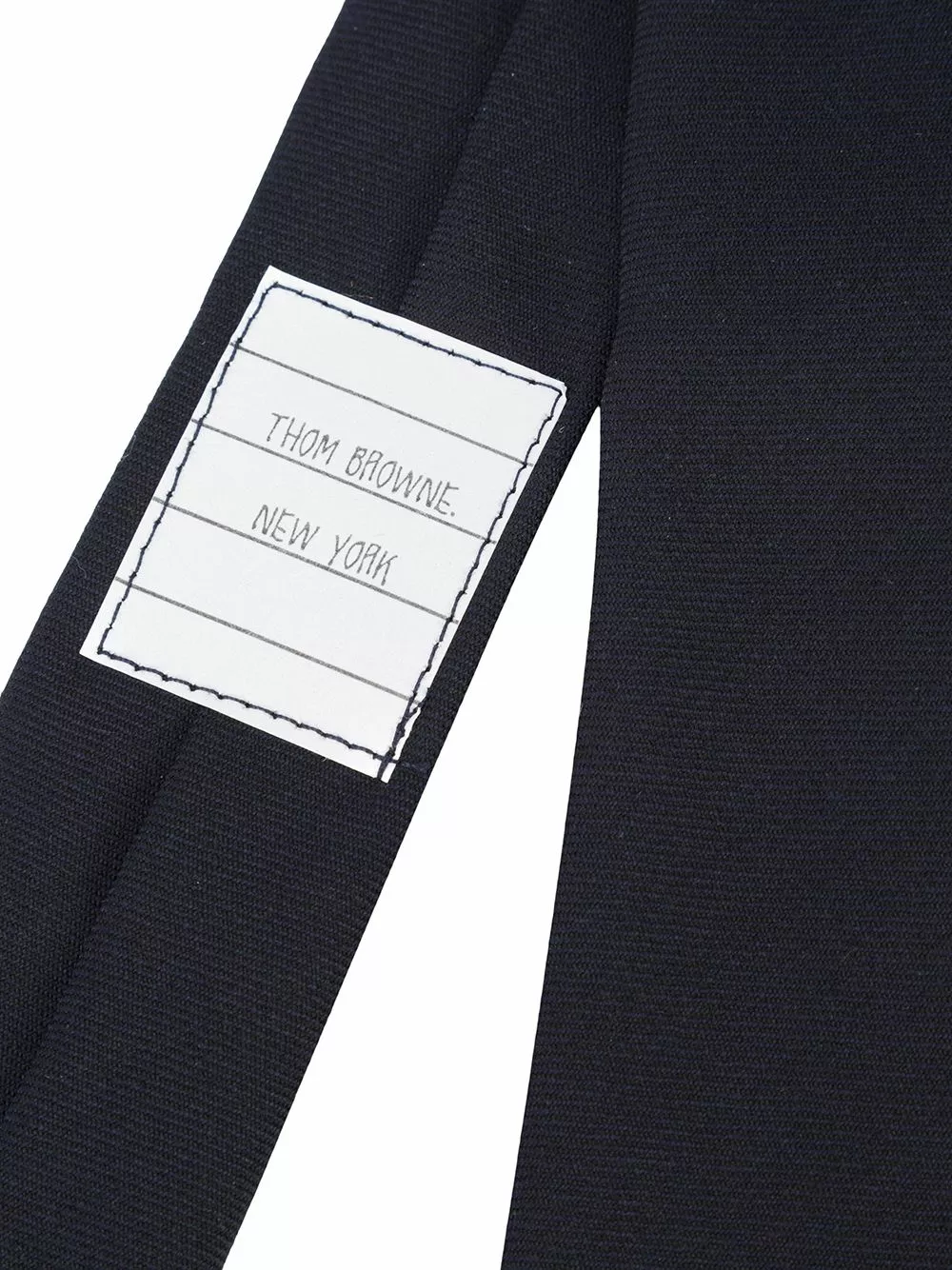 Navy blue wool classic necktie in school uniform plain weave from Thom Browne.