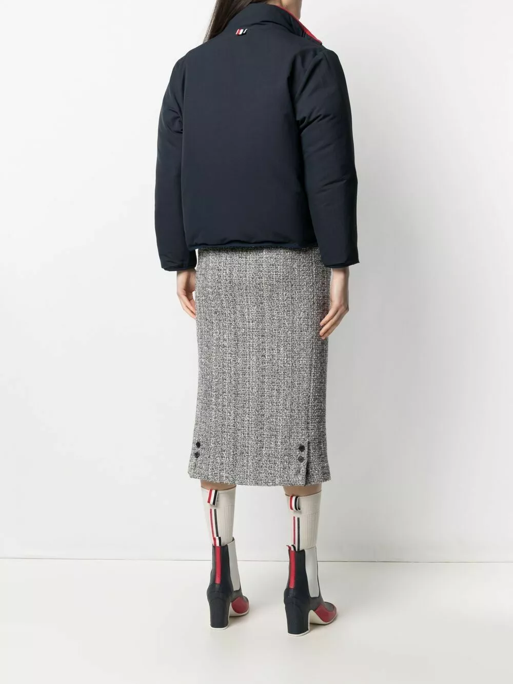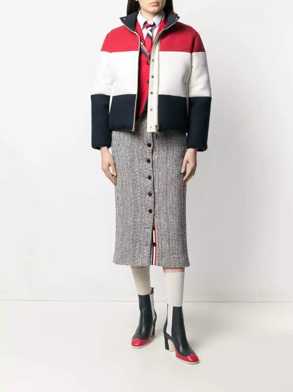 Leave no one in doubt where your latest puffer jacket is from. In signature shades of red, white and blue, it’s obvious that this is a Thom Browne design. Where else?