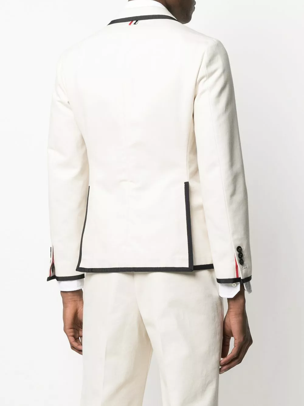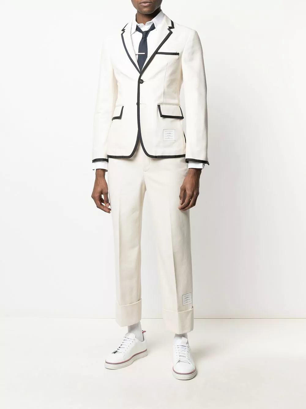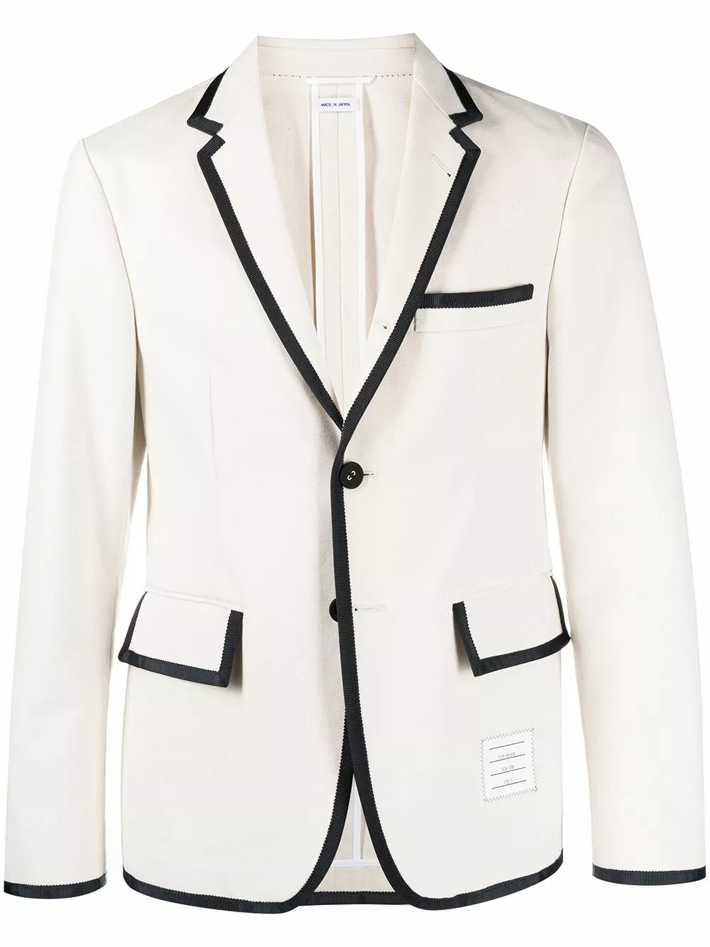 Not everything in life is black and white. But this blazer from Thom Browne centrainly is; in a pure cotton construction with a contrasting black border, this piece is here to turn both looks and heads. Black, white, you all-over.