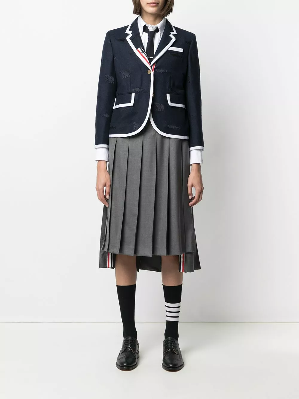 It’s time to add some flair to your office looks. With a subtle animal embroidery, this Thom Browne blazer will imbue your ensembles with a sense of playful elegance. Classic, but never boring.