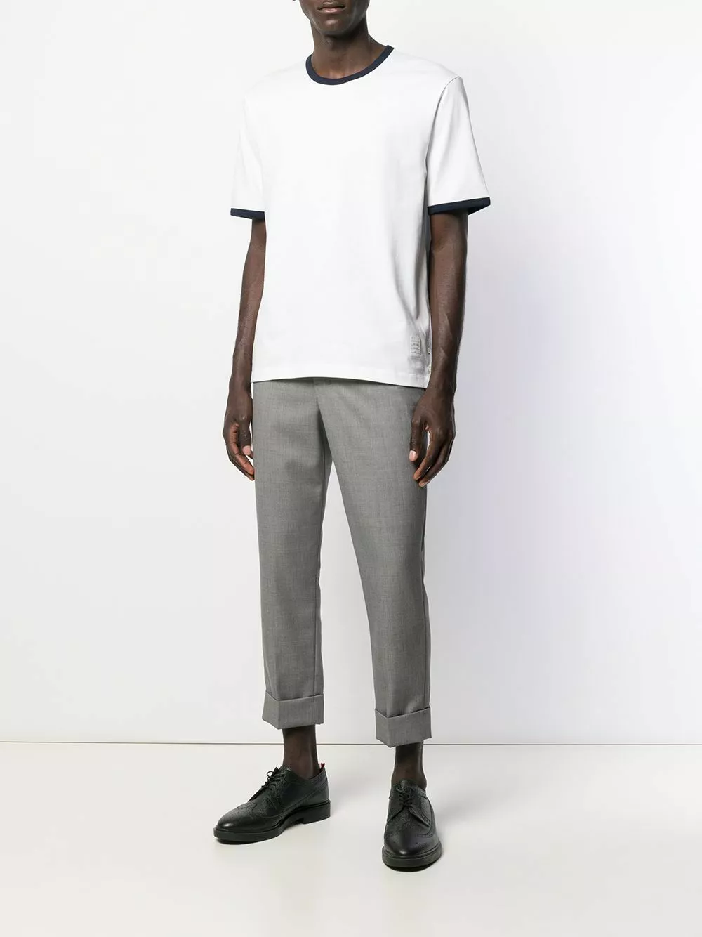 Give your regular white shirt a break. Boasting a soft cotton construction, this contrasting trim T-shirt is a little update for your basics section. Let Thom Browne upgrade you.