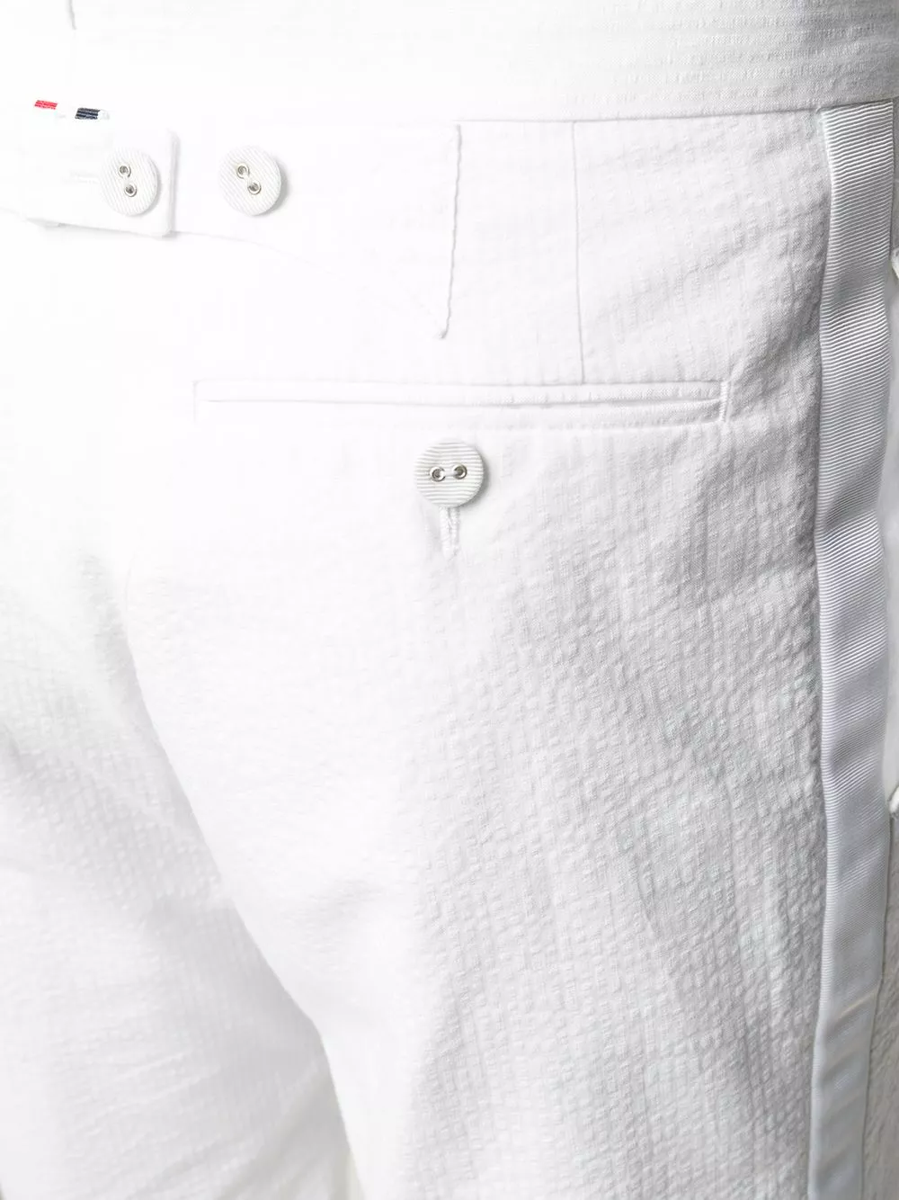 Short construction doesn’t have to lose it’s smarts. Known for shrinking silhouettes and keeping heritage style, Thom Browne keeps it clever. Short and sweet.