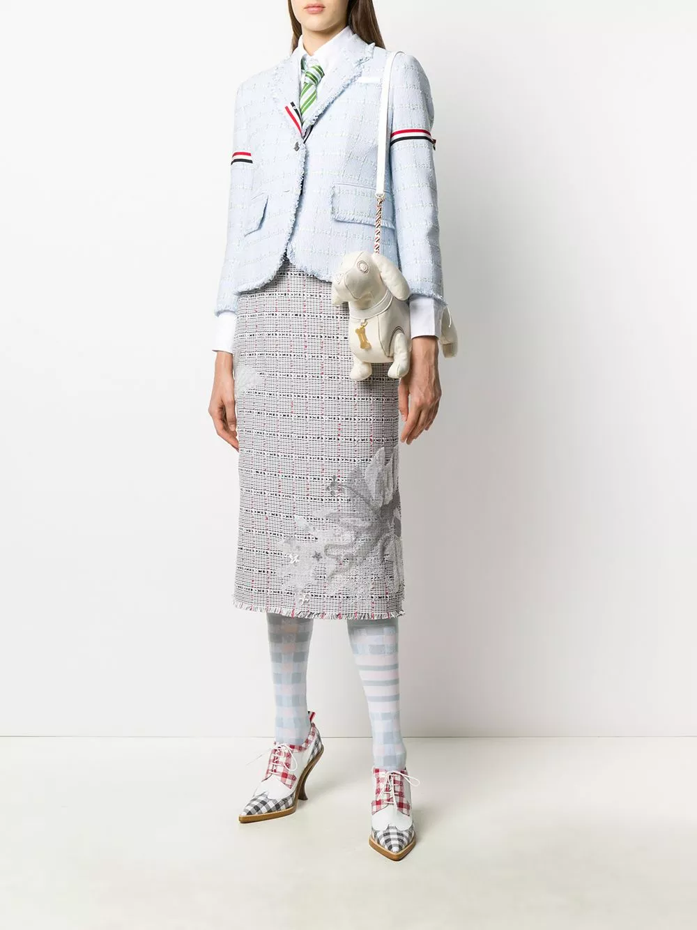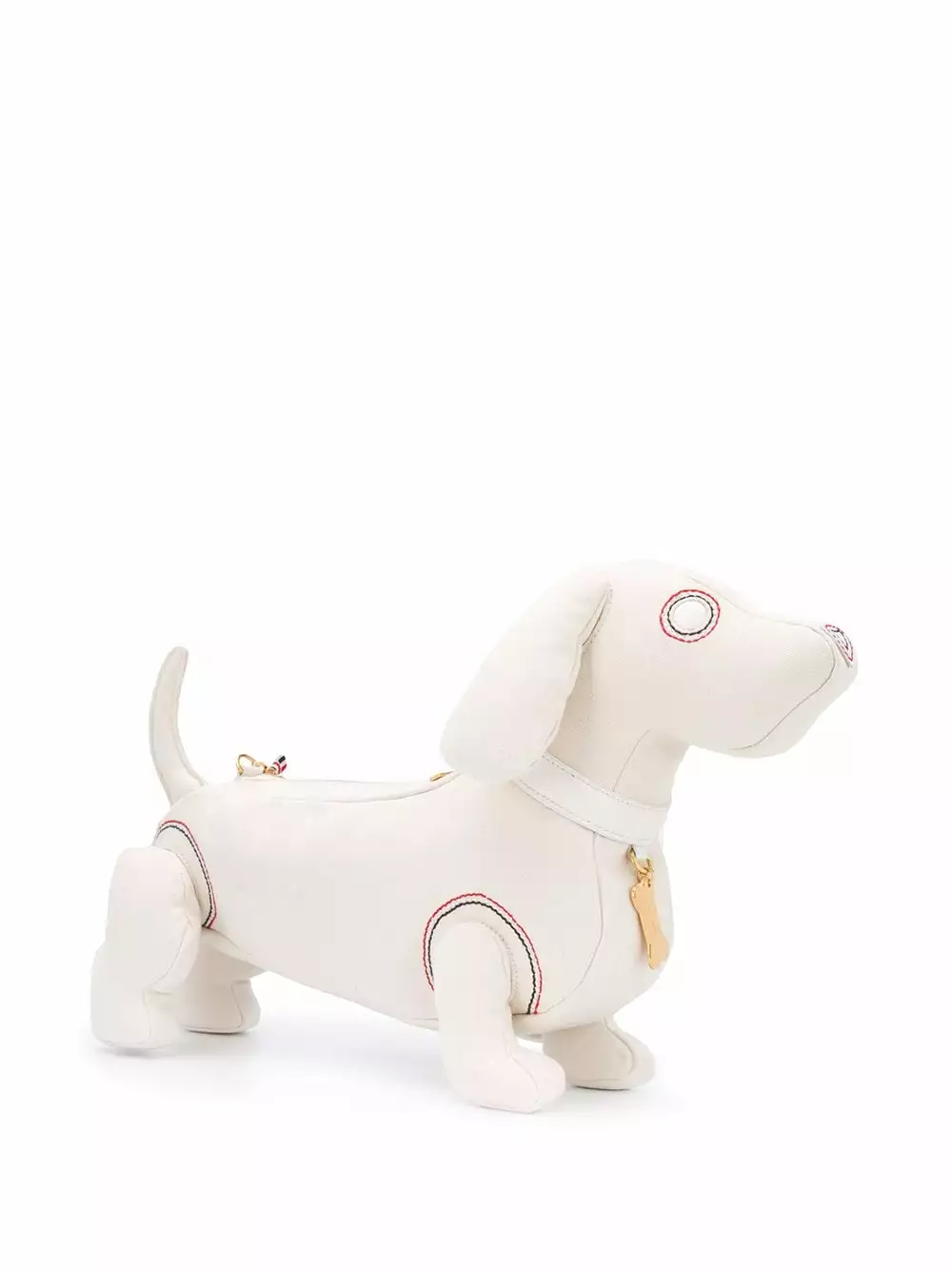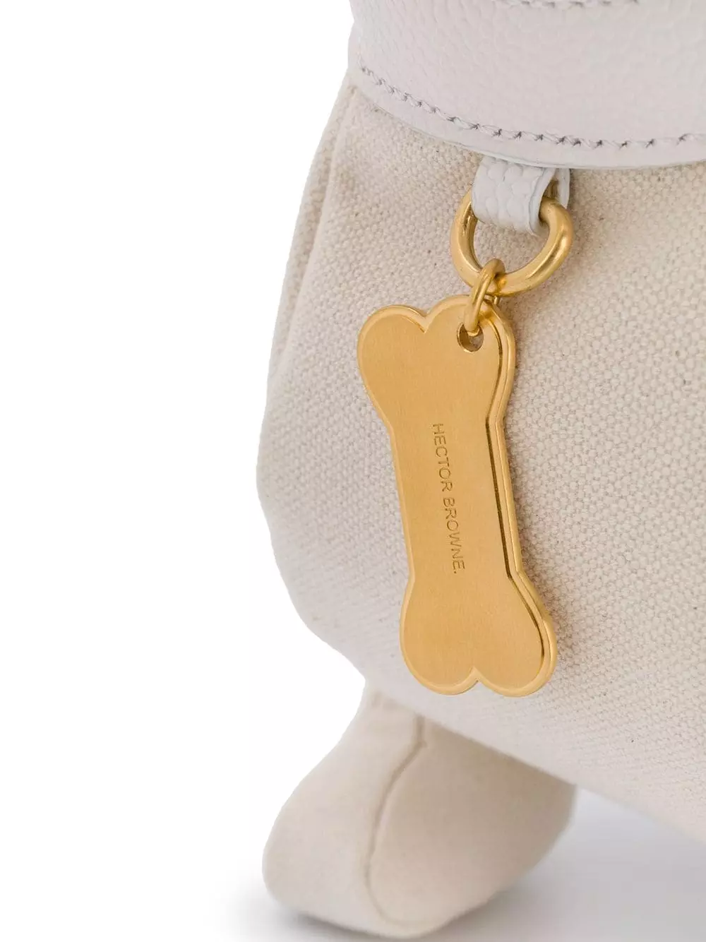 Take your bag-game to the next step with this cotton Hector Bag from Thom Browne. Prepare for all the looks. You’re winning. Featuring shoulder strap, a hanging leather tag, chain-link lead, a top zip closure, an internal zipped pocket, an internal logo patch, gold-tone hardware, a gold-tone bone charm with an engraved logo, a tricolour grosgrain tab and a striped lining.