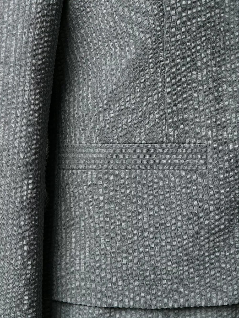 We feel we should warn you about the number of compliments you’ll receive when wearing this shirt. It features a vertical stripe pattern, crinkled finish, long sleeves, front button fastening and slip pockets to the sides. A winning combination.