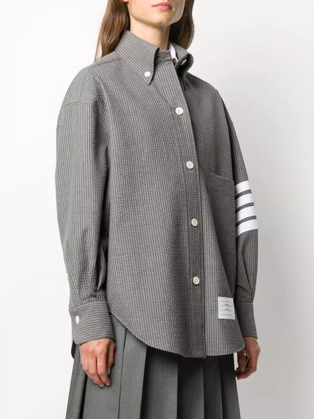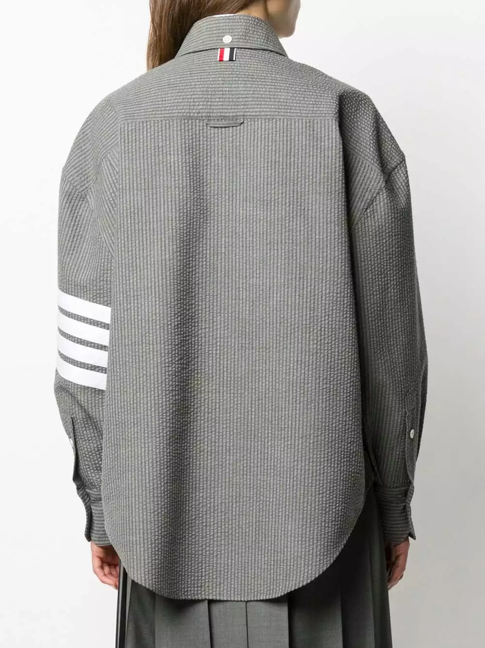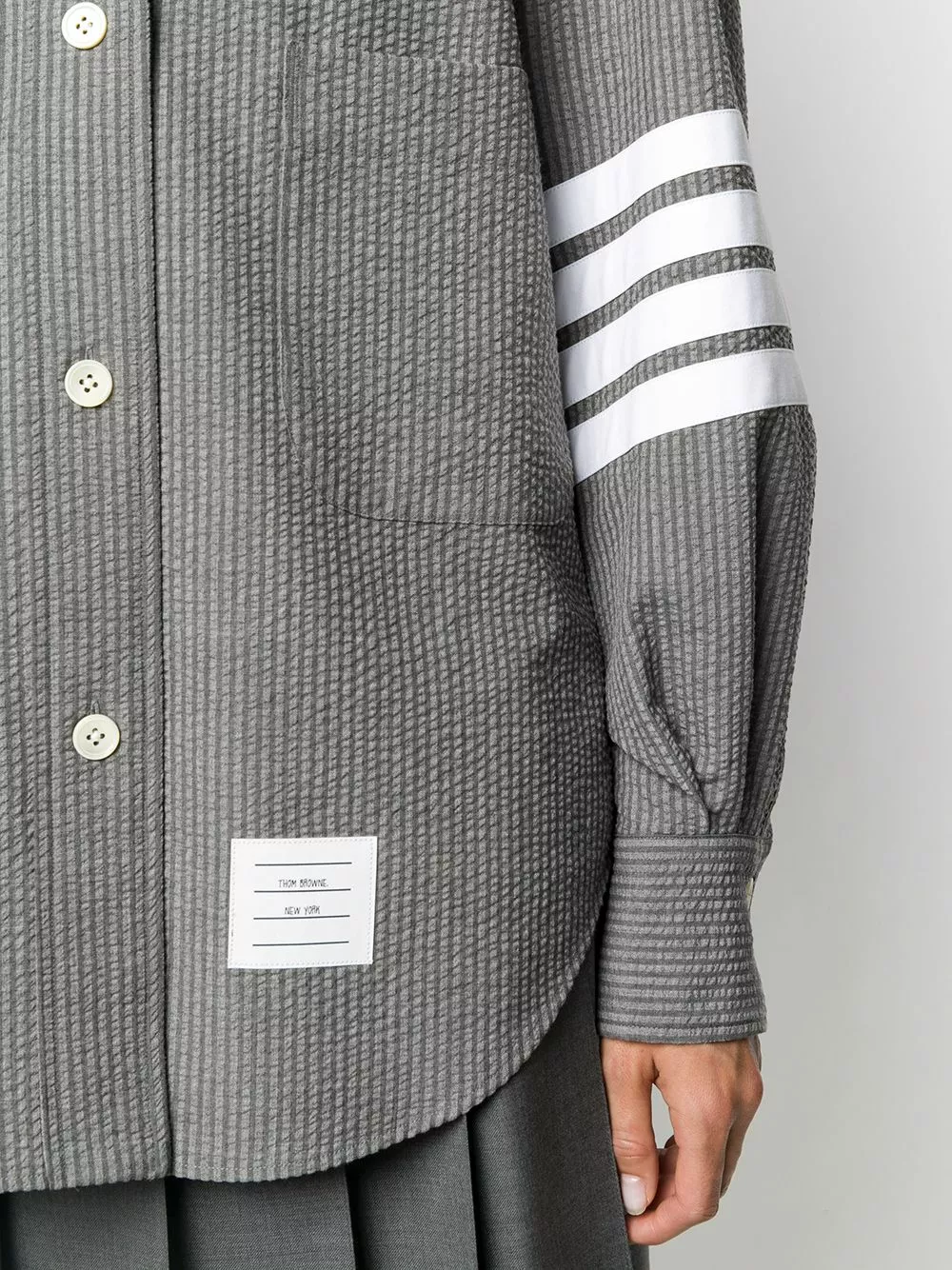 We feel we should warn you about the number of compliments you’ll receive when wearing this shirt. It features a vertical stripe pattern, crinkled finish, signature 4-Bar stripe, front patch pocket, front button fastening, classic collar, buttoned-cuff sleeves and logo patch to the front. A winning combination.