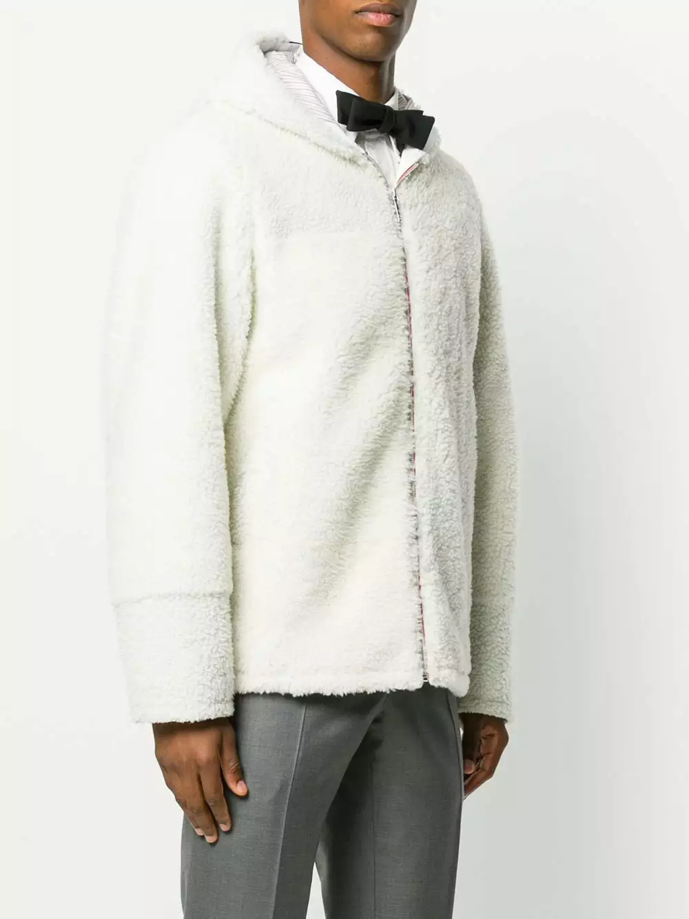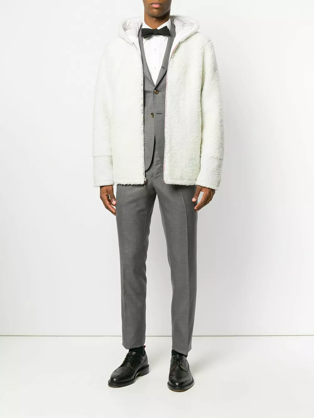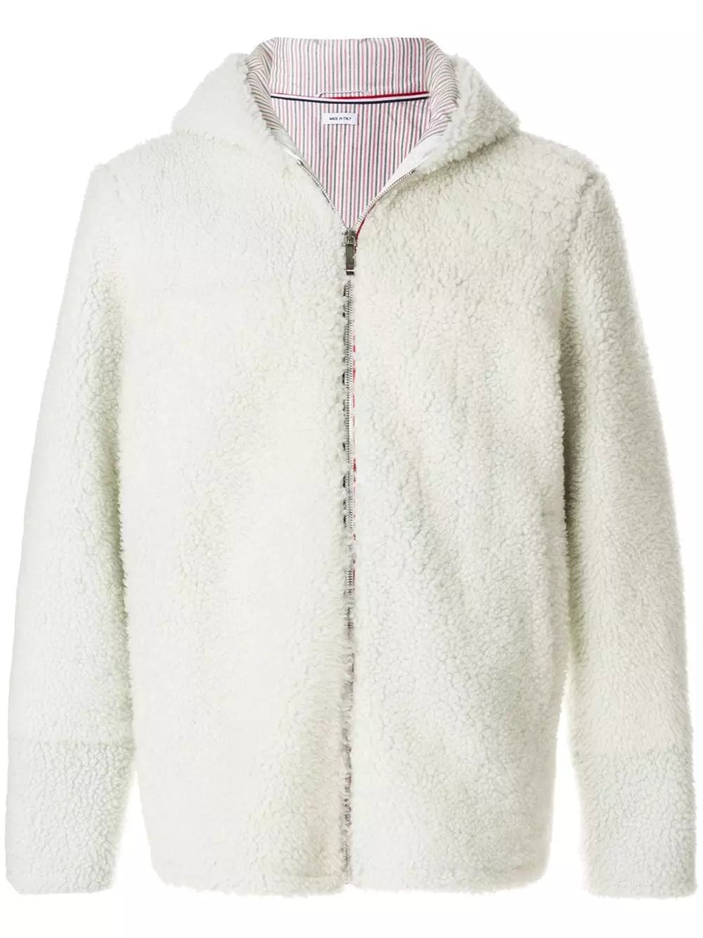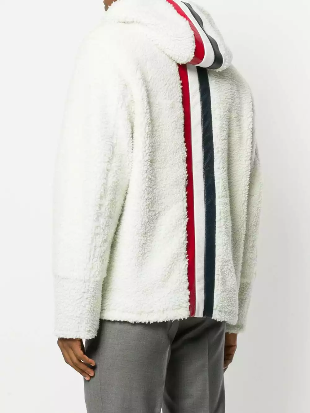 White Deerskin Stripe Dyed Shearling Jacket from Thom Browne.