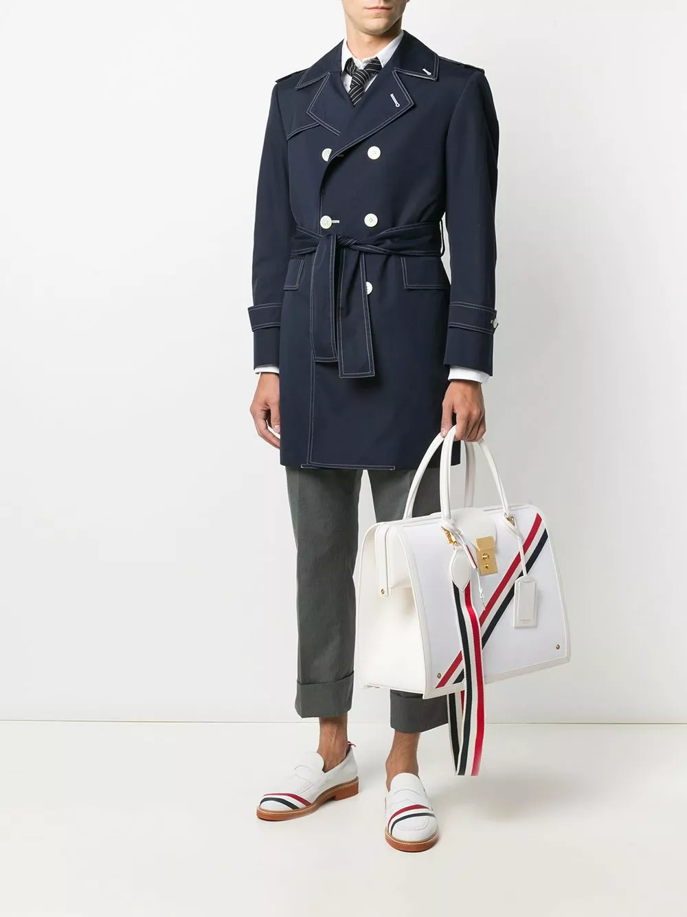 Your new favourite coat? It’s right here in front of you. And it’s this navy double-breasted piece from Thom Browne.