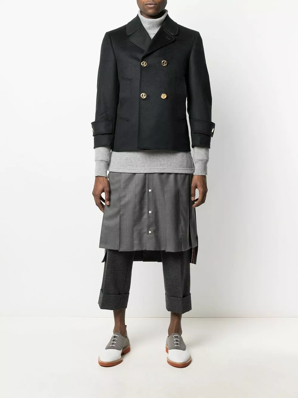 Uncomfortable officewear is a thing of the past. In a delicate cashmere composition, this Thom Browne blazer has the ability to keep you cosy while maintaining a polished aesthetic. Winning combo.