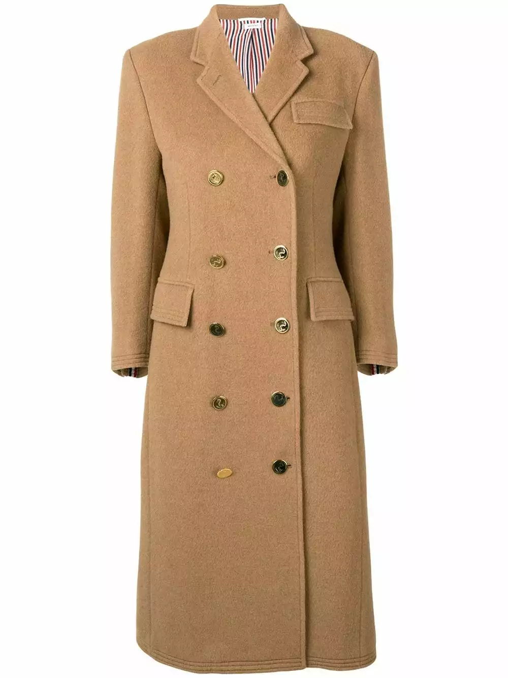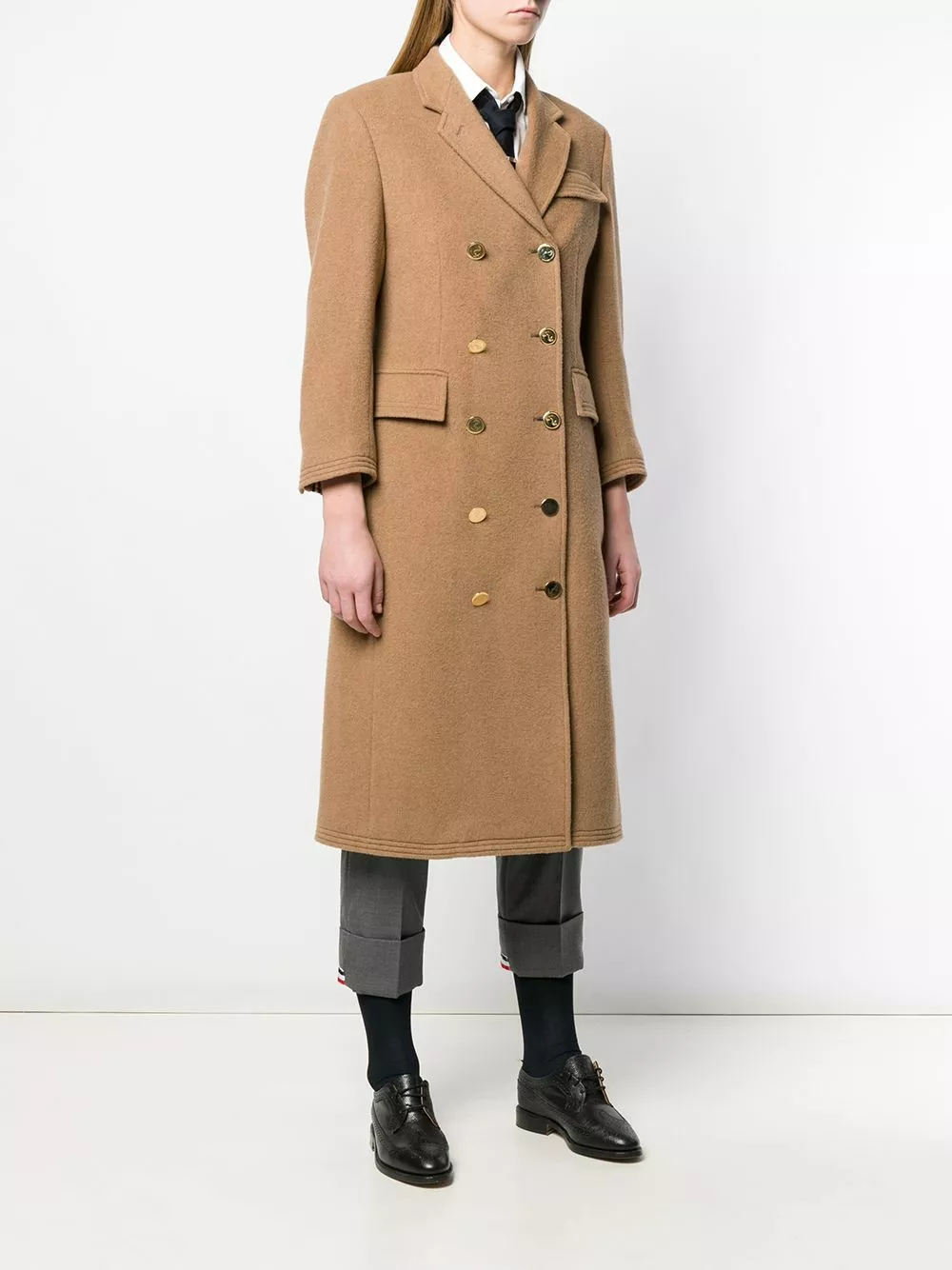 No wardrobe is complete without a classic camel coat. Yours isn’t complete without this double-breasted camel coat from Thom Browne. Don’t let your outerwear be an afterthought.
