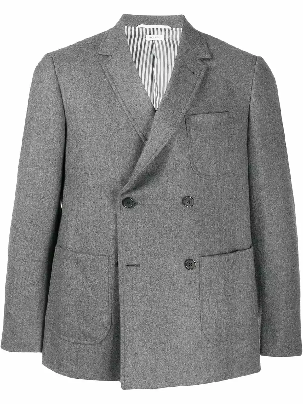 Sleek tailoring doesn’t need to be boring and Thom Browne knows how to do it like no one else! Crafted from soft wool, this double-breasted flannel sack jacket will pass the test of time. Timeless is key! Featuring a double breasted front fastening, a chest pocket, long sleeves, a double breasted front fastening, two front pockets and a rear central vent.