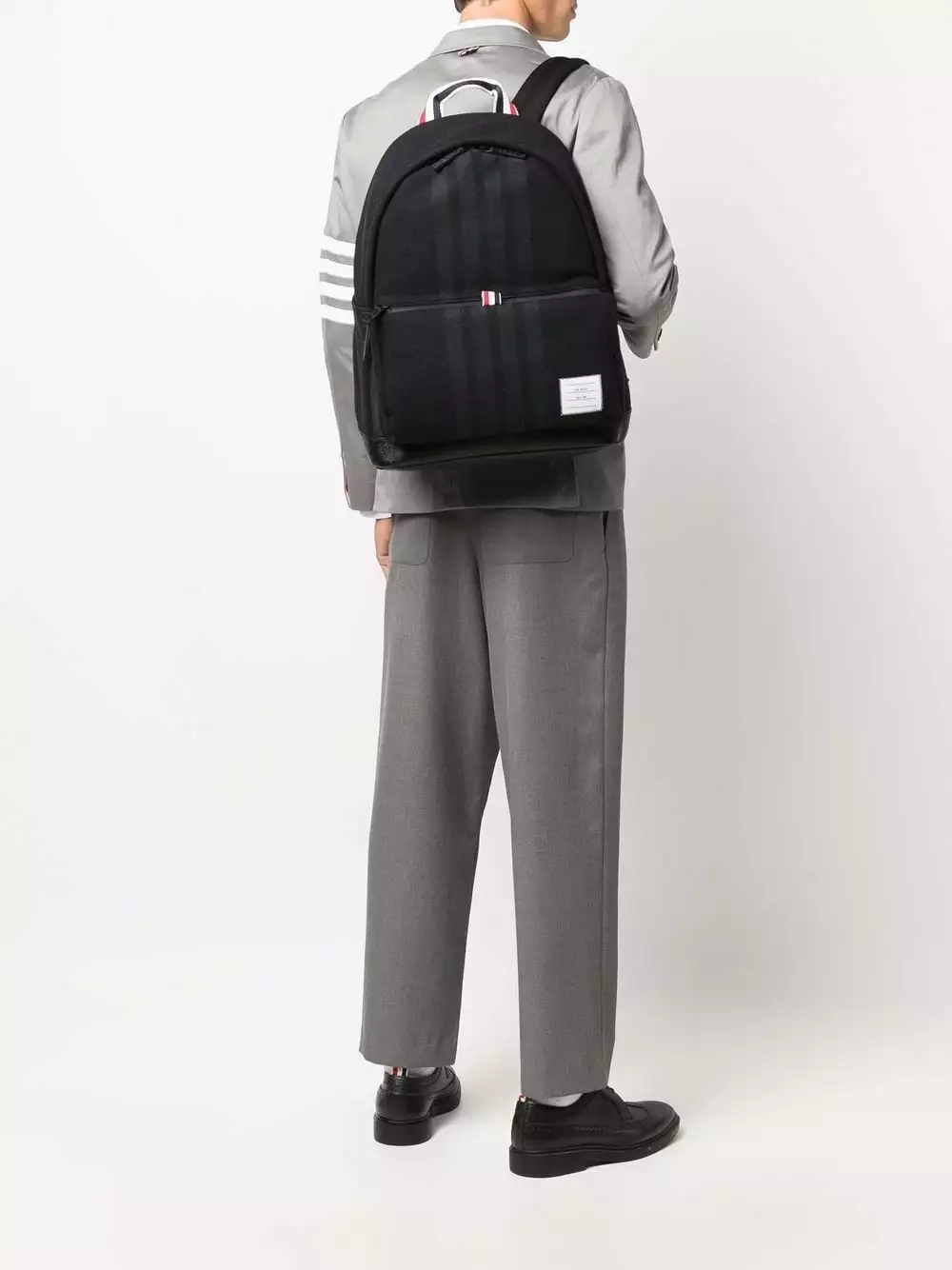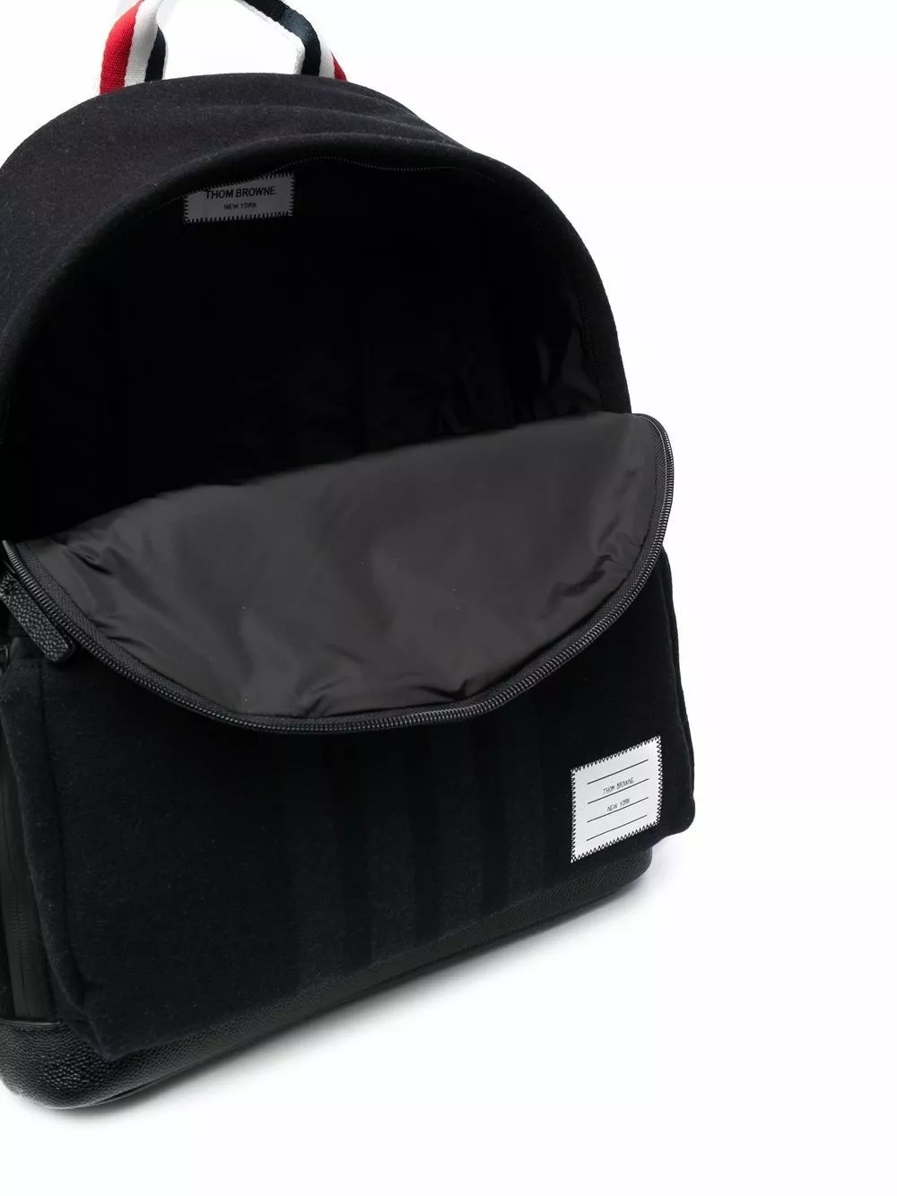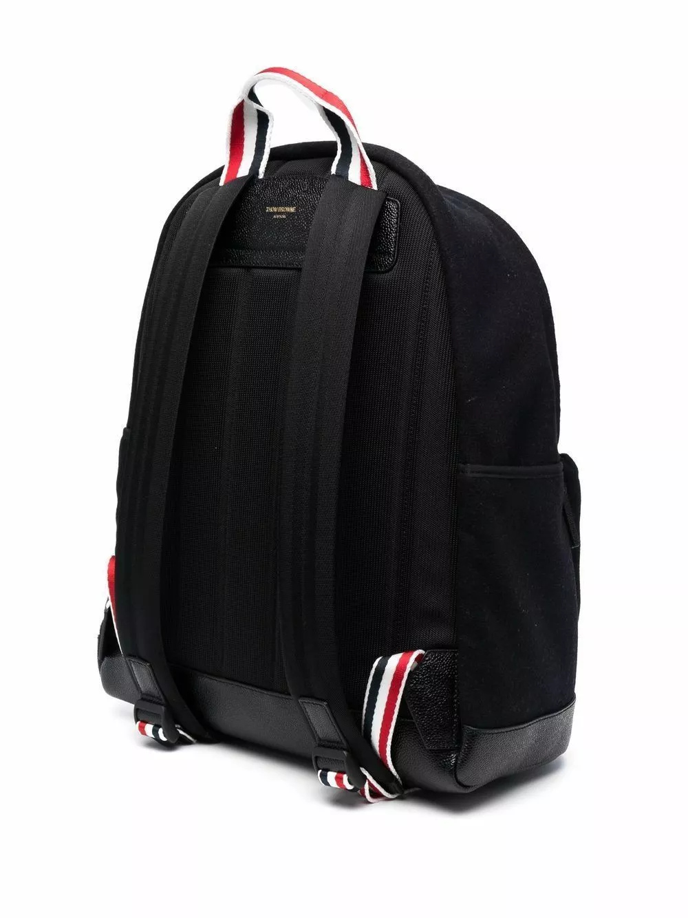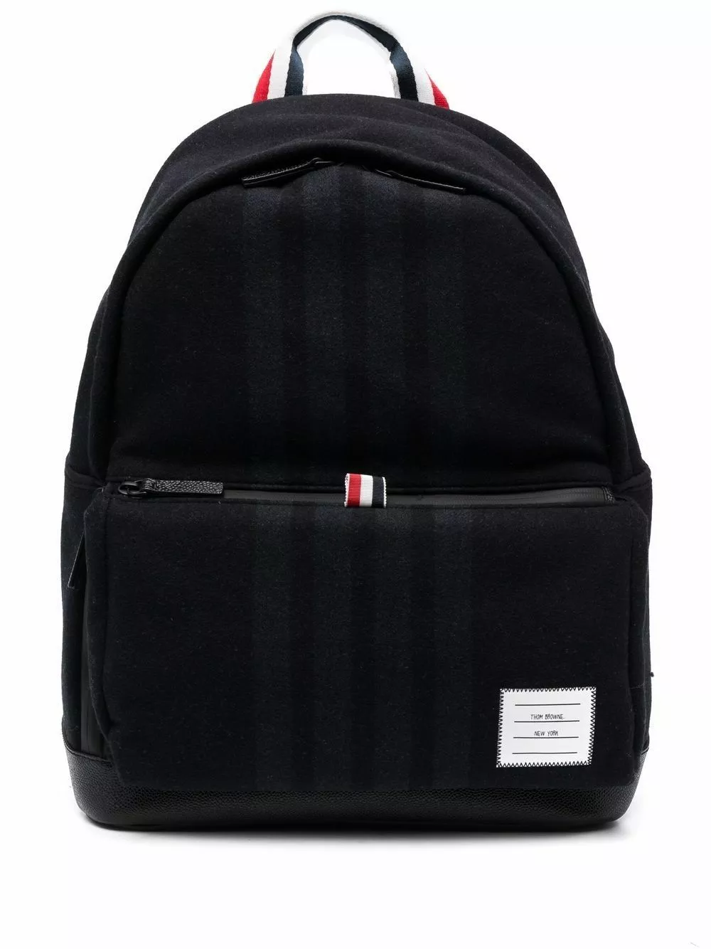 Combining function and sleek style, this Thom Browne backpack boasts a spacious main compartment and versatile black colourway, whilst signature red, white and blue stripes add bold detailing to the piece.