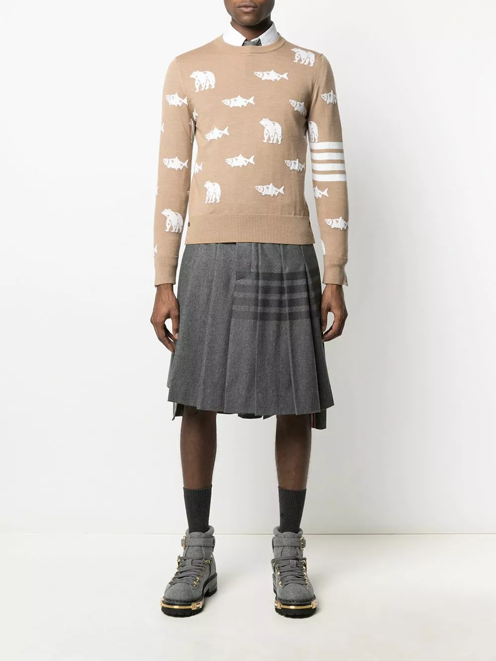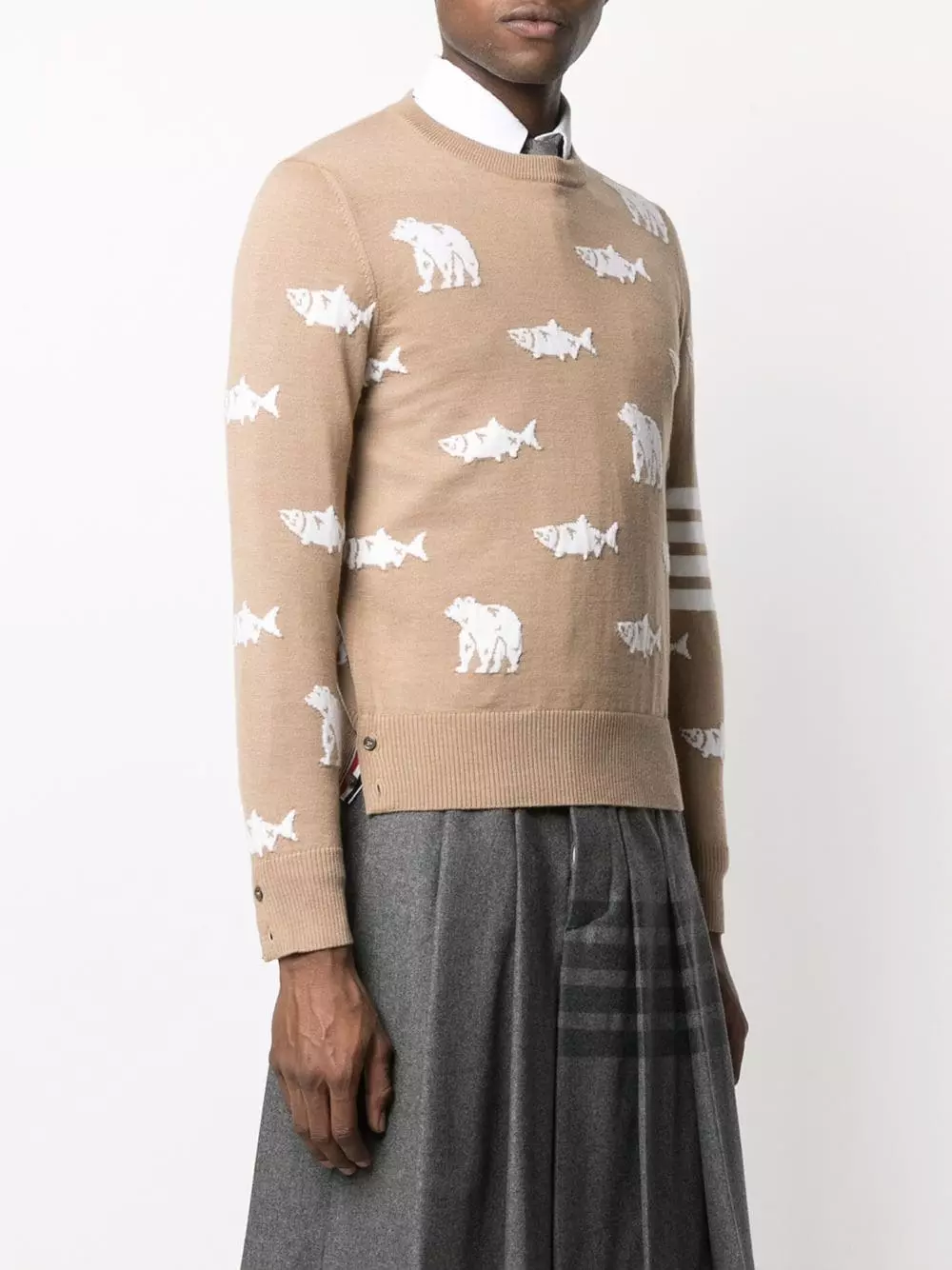 There’s plenty of fish in the sea, but there aren’t many cool jumpers like this one. Crafted from merino, this camel brown embroidered fish jumper will add a playful touch to your everyday looks while keeping you warm. Courtesy of Thom Browne.