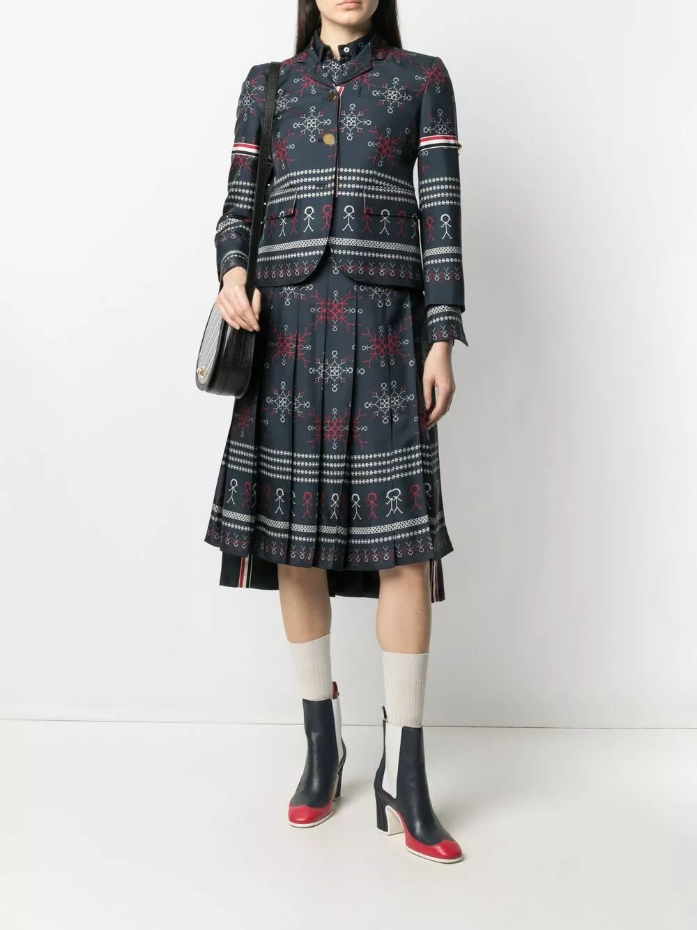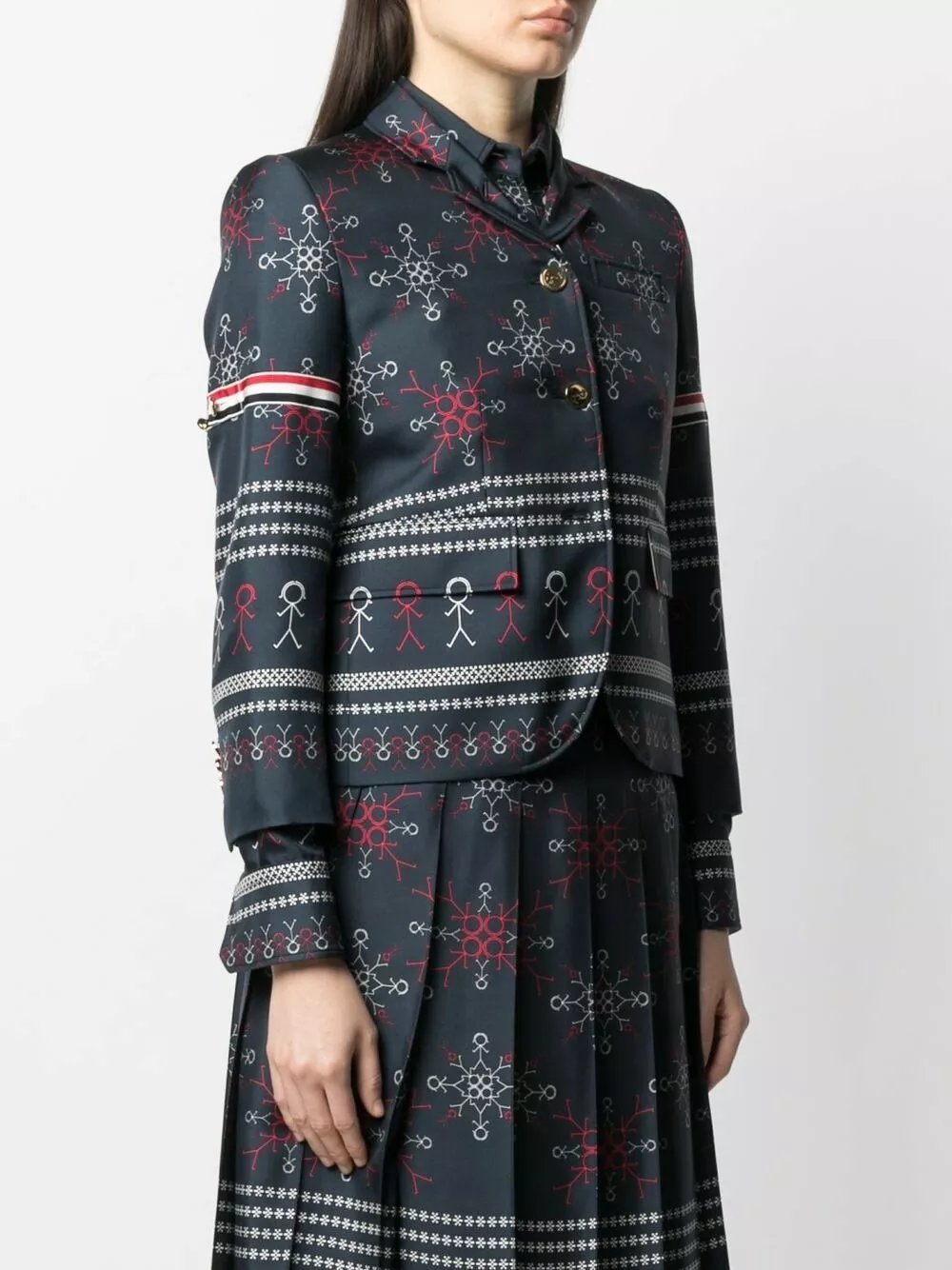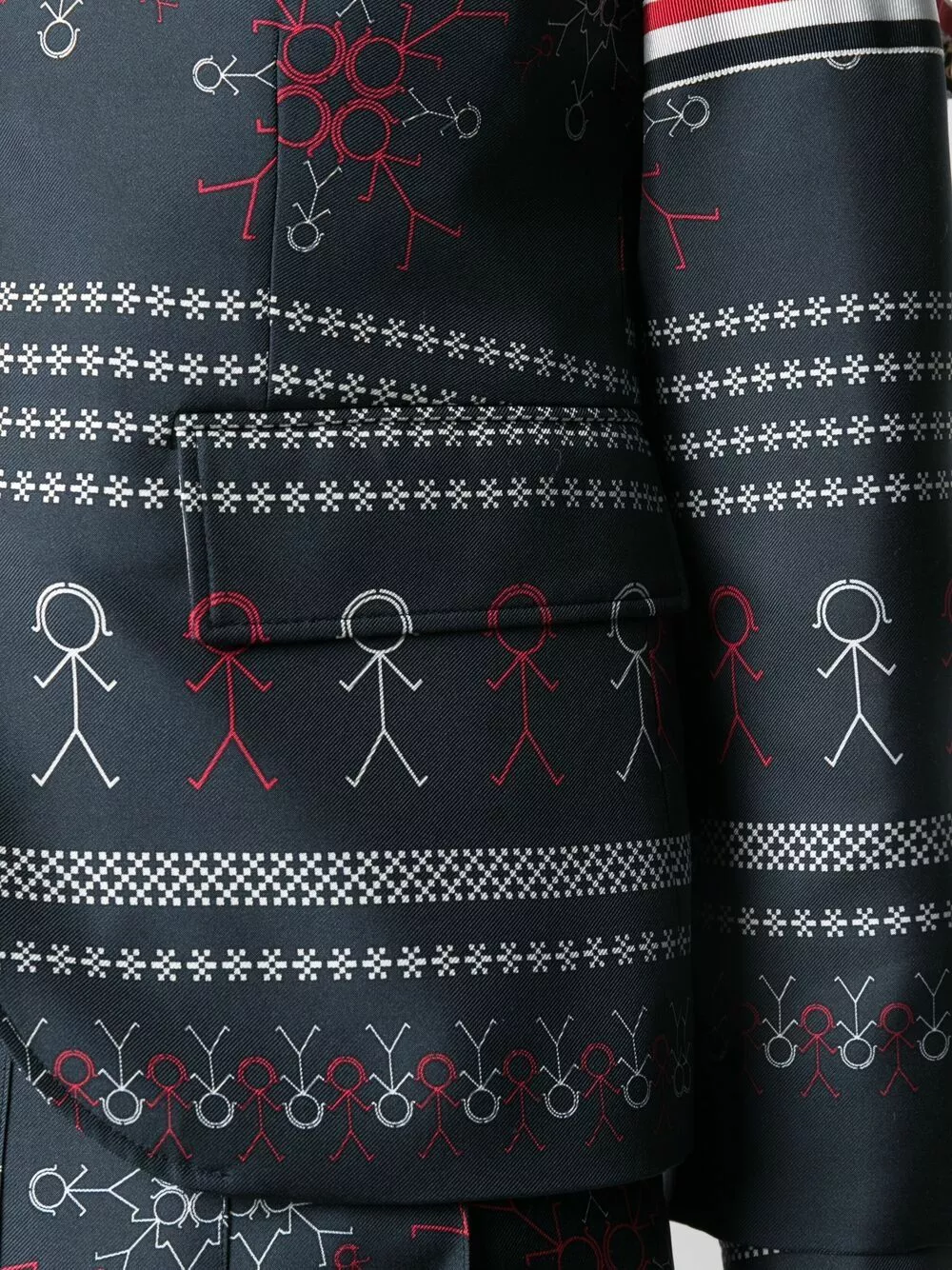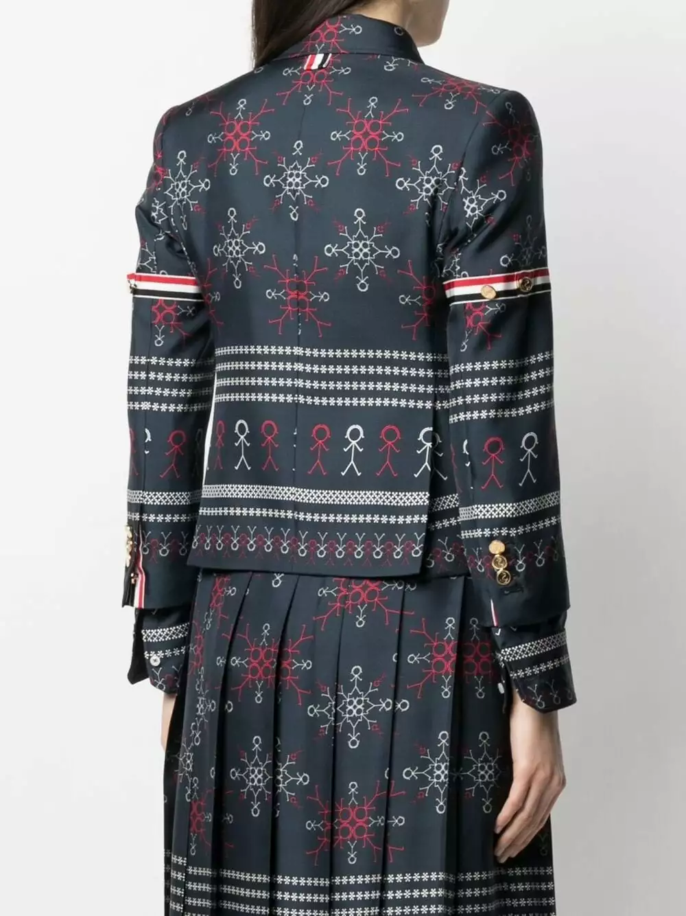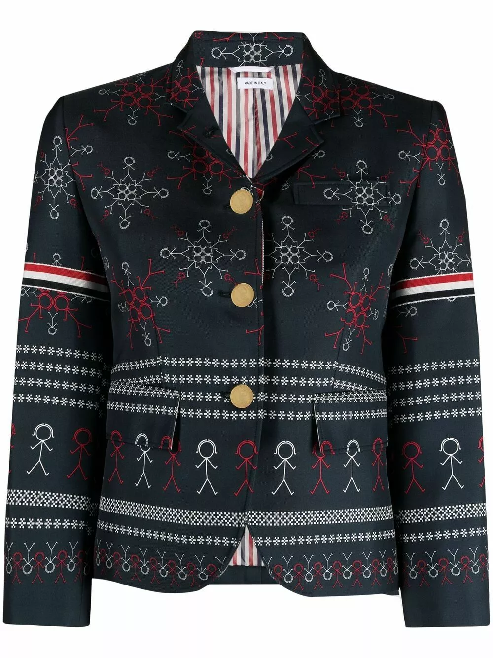 Thinking about tailoring your wardrobe in a different direction? Smarten up and exude confidence in this Thom Browne falling snowflake sports blazer that boasts a bold design that people are bound to take notice of. Suit up.