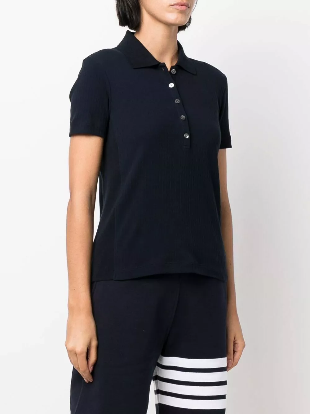 Showcasing Thom Browne’s preppy style, this polo shirt boasts a classic short-sleeve design. This speaks to the brand’s idea of a versatile daily uniform.