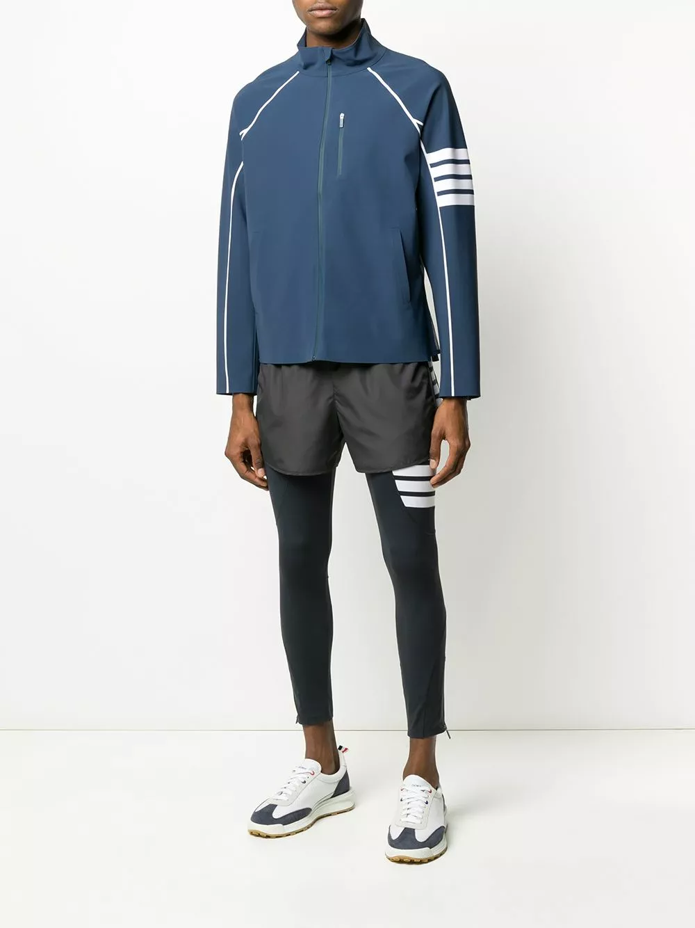Get ready to give your best on the next marathon with these flyweight tech 4-Bar running shorts from Thom Browne. Constructed with a lightweight material, the rest of the participants need to take care, you won’t be running, you’ll be flying! Featuring an elasticated waistband, a lightweight construction, side seam pockets, a back zip pocket and a 4-bar stripe detail.