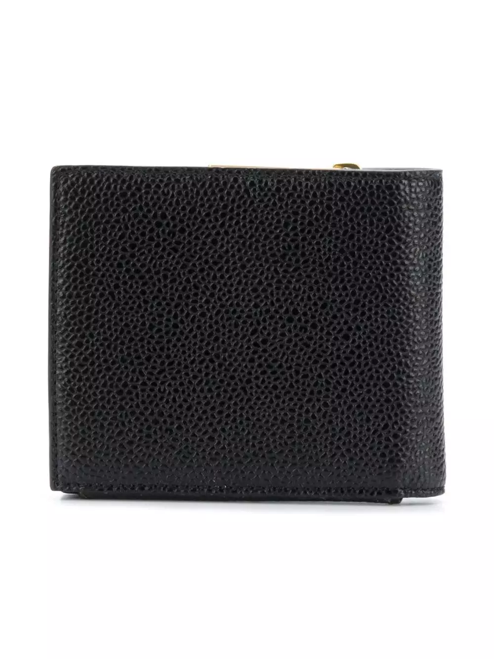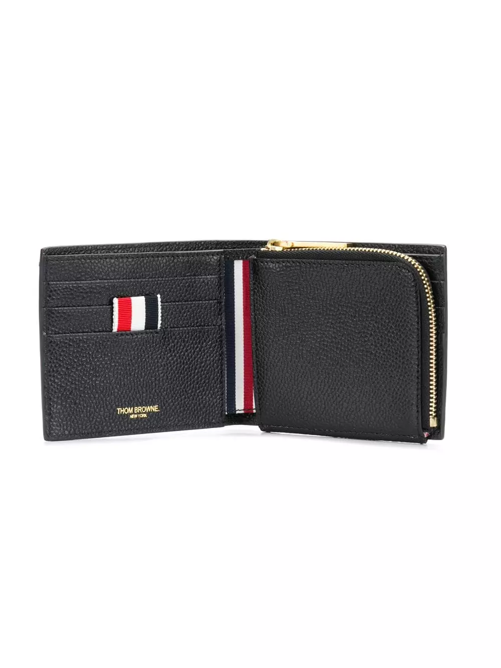 Combining highest-quality fabrics and a conservative sensibility with a touch of irreverence and humour, Thom Browne’s Spring/Summer 2019 is full of modern must-haves. Crafted in Italy from pebble grain leather, this black bifold coin purse features a note compartment, multiple card slots, a zipped coin pouch, an embossed logo and a signature tri-colour striped trim – discreet yet directional.