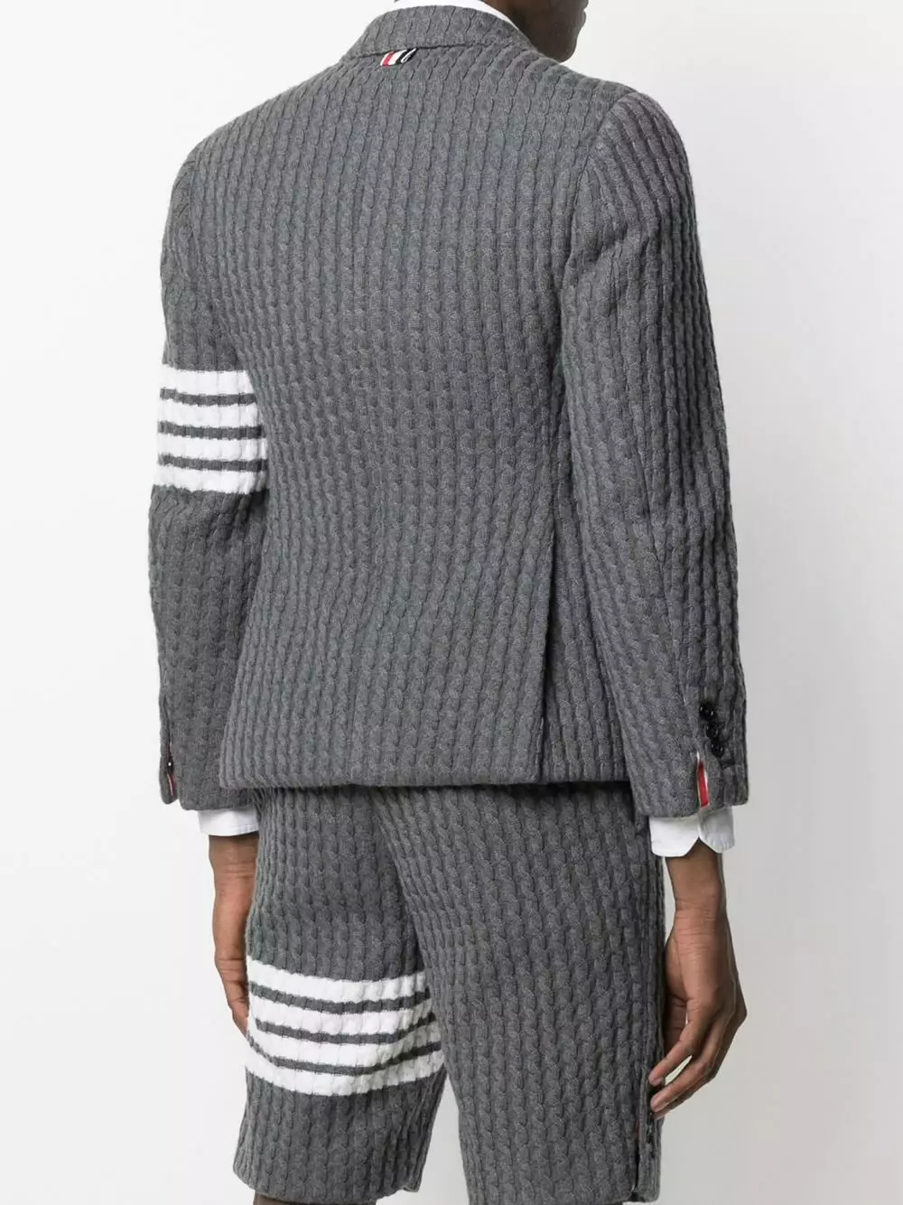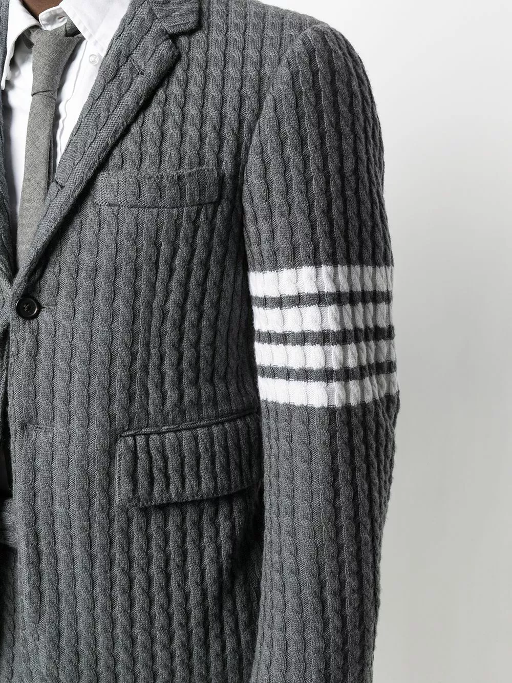 Forget about restrictive and uncomfortable officewear. With a knitted construction and a four-bar detail, this Thom Browne jacket is here to make it clear that comfort can look good too. Move over, old blazers.