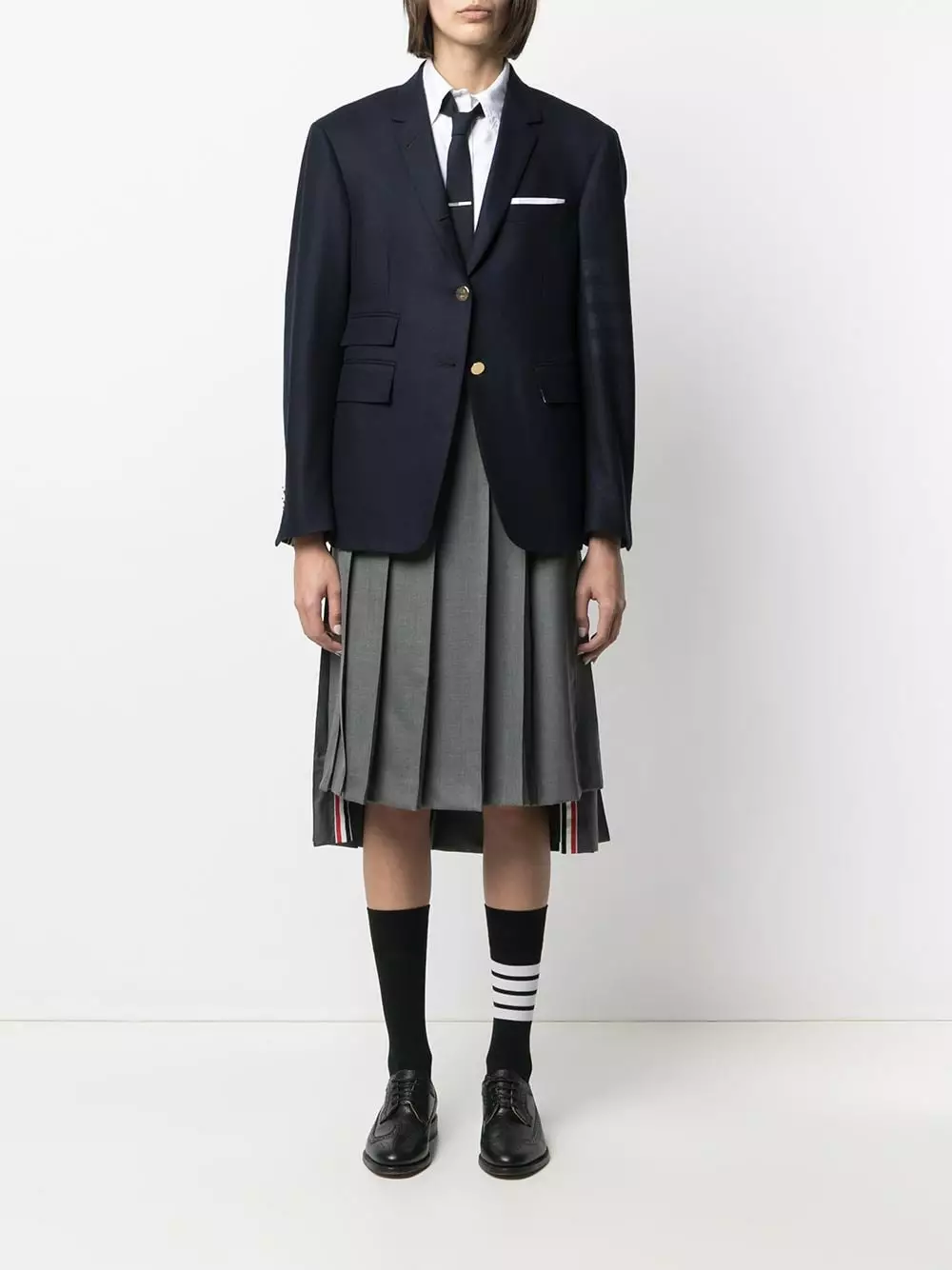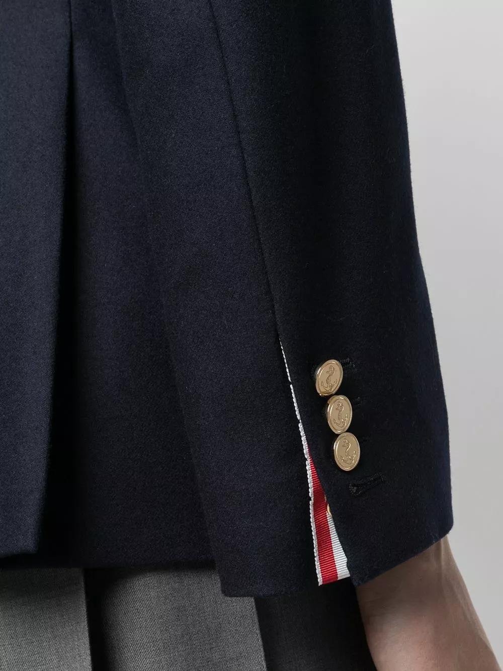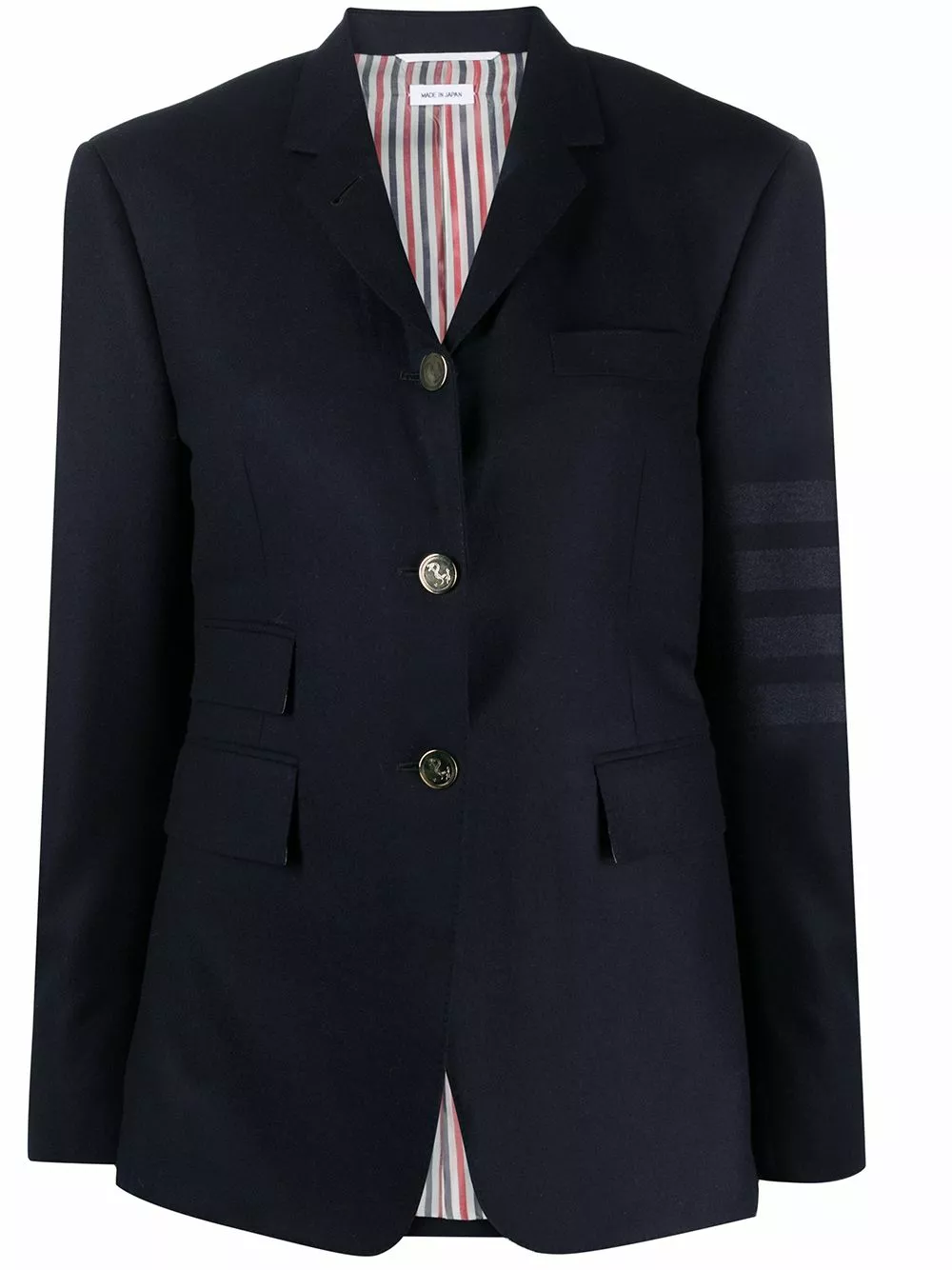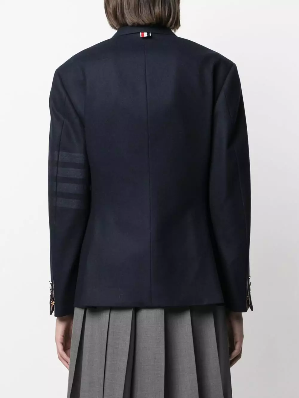 At first glance, this may look like just another blazer. But the subtle four-bar detailing and the RWB rear tab give it away – Thom Browne’s to blame for your newest addiction. One of a kind.