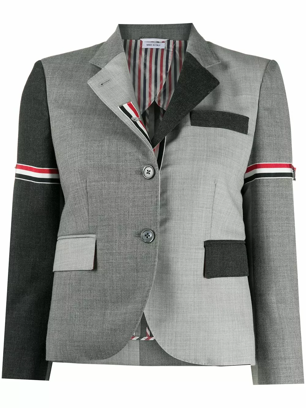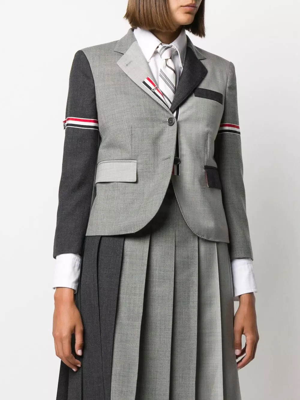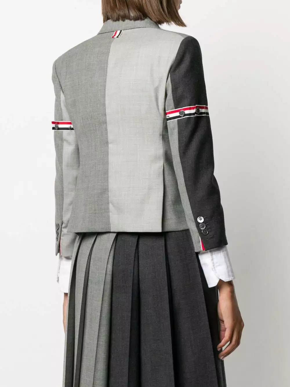 To create something new, you have to destruct and reconstruct. That’s what Thom Browne does with tailoring and this grey wool Fun-Mix panelled blazer. It strikes just the right balance of timeless and unconventional.