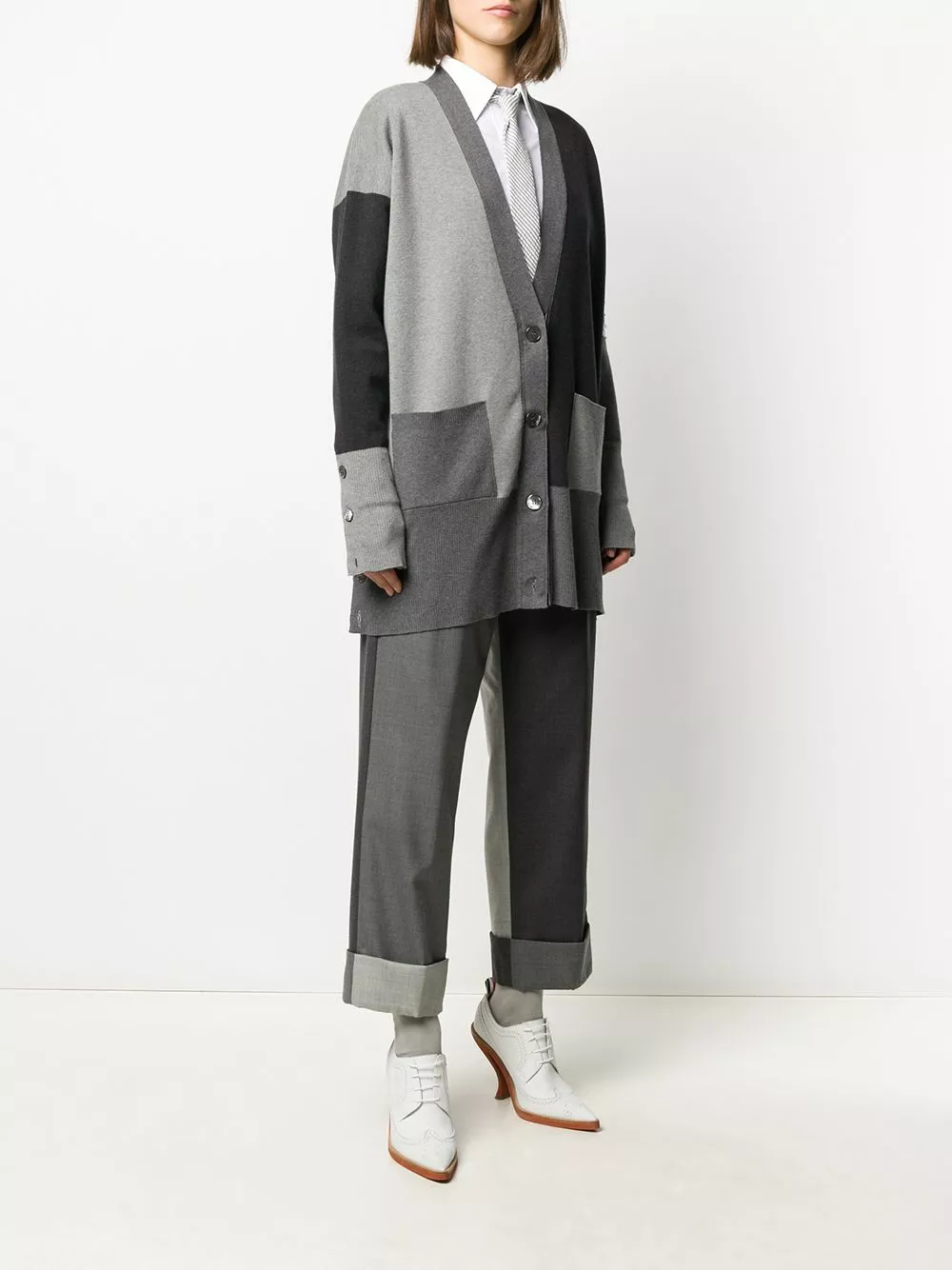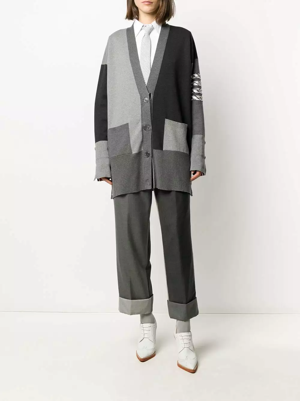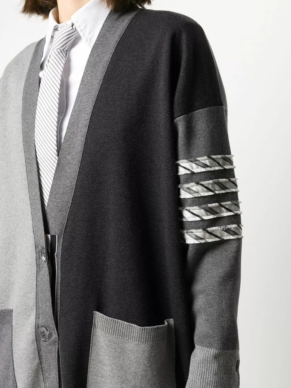 The days are getting colder and your knitwear collection is getting more and more use. But it’s still missing the key piece. And that key piece is this Funmix 4-Bar stripe cardi-coat from Thom Browne.