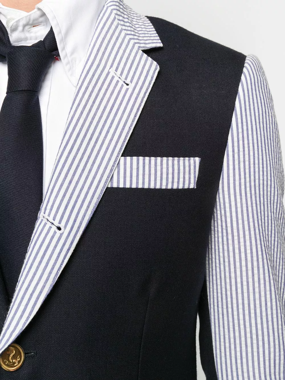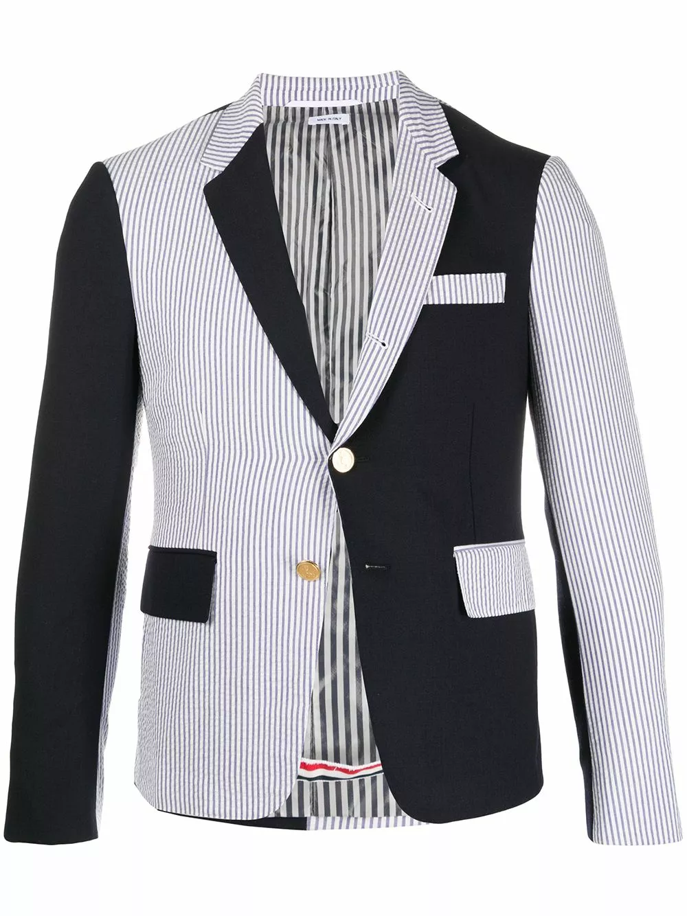 Have a little fun with your wardrobe. Crafted from navy cotton, this funmix seersucker blazer from Thom Browne is just what it takes to shake things up with style. The perfect fit.
