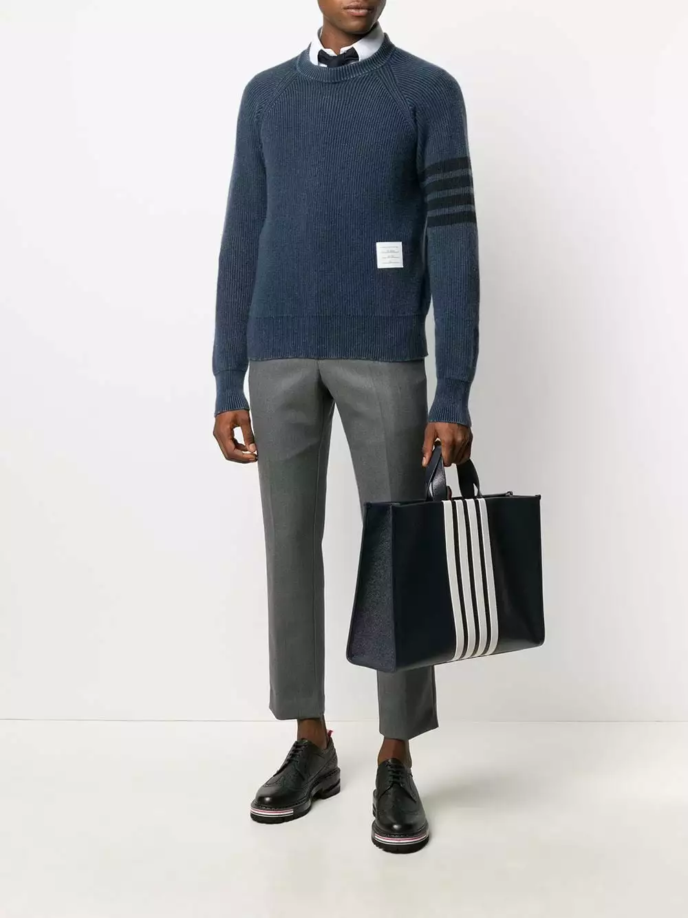 Usually, you’d be wishing a family member would make a pullover this comfy. However, Thom Browne got their first with this garment-dyed piece. Tell grandma thanks, but you’re sorted.