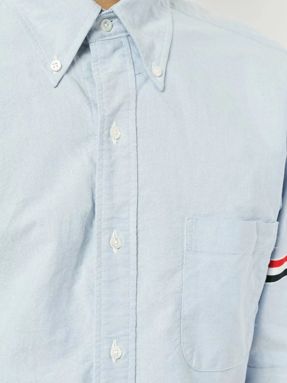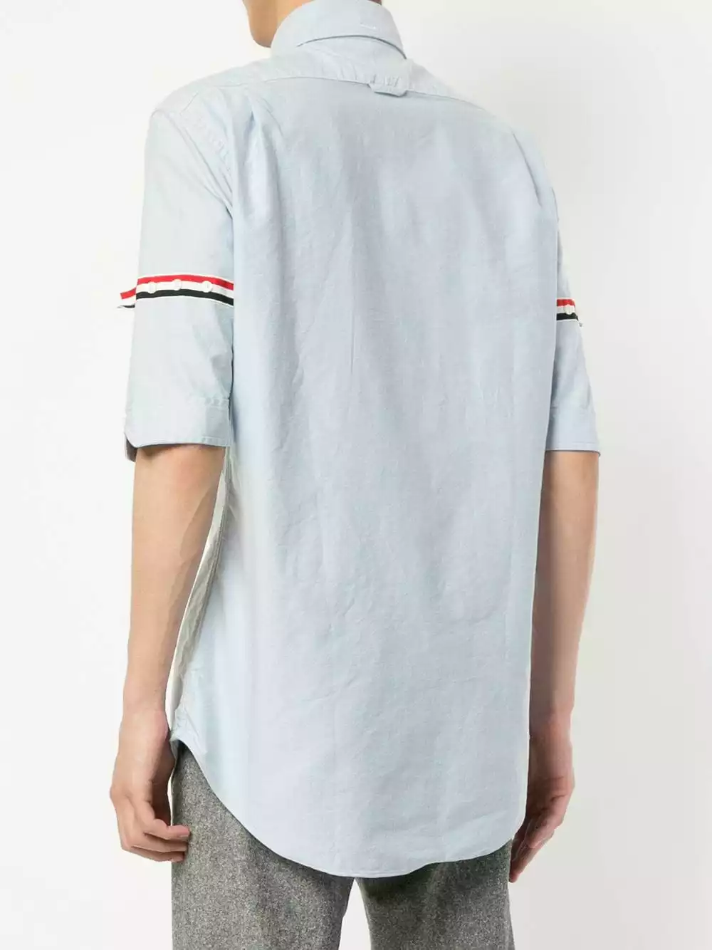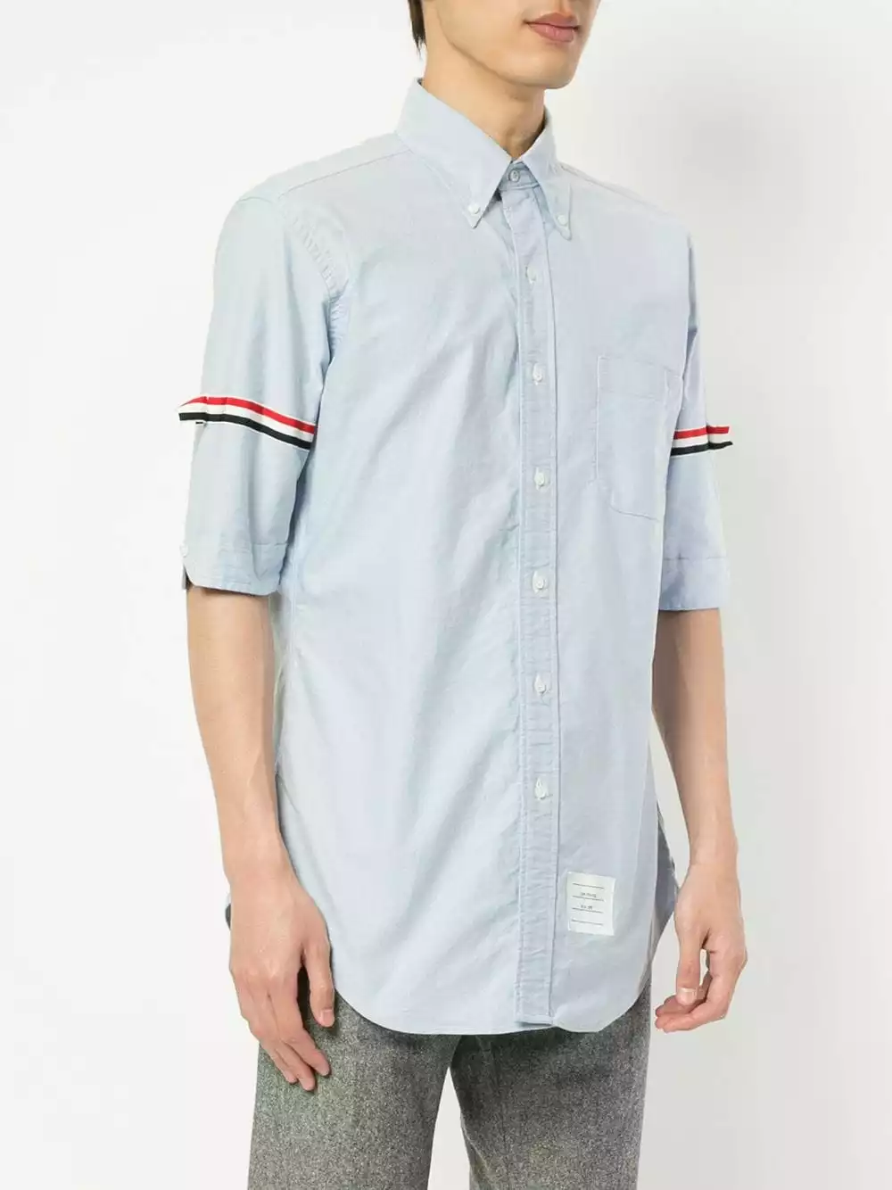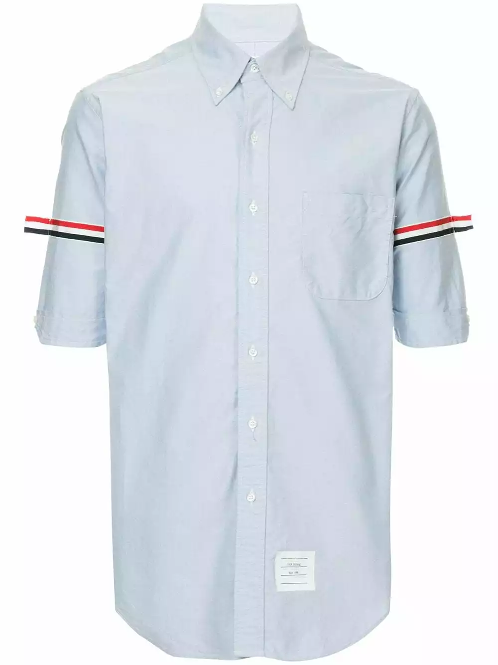 A lineup of investment pieces designed to withstand the test of time, Thom Browne’s Spring/Summer 2019 collection continues to blur the lines between refined tailoring and contemporary sportswear. Crafted from pure light blue cotton, this grosgrain armband shirt from Thom Browne features a button down pointed collar, a front button fastening, short sleeves, a chest pocket, a curved hem, signature tricolour grosgrain armbands and a Thom Browne 4-Bar tag to the front.