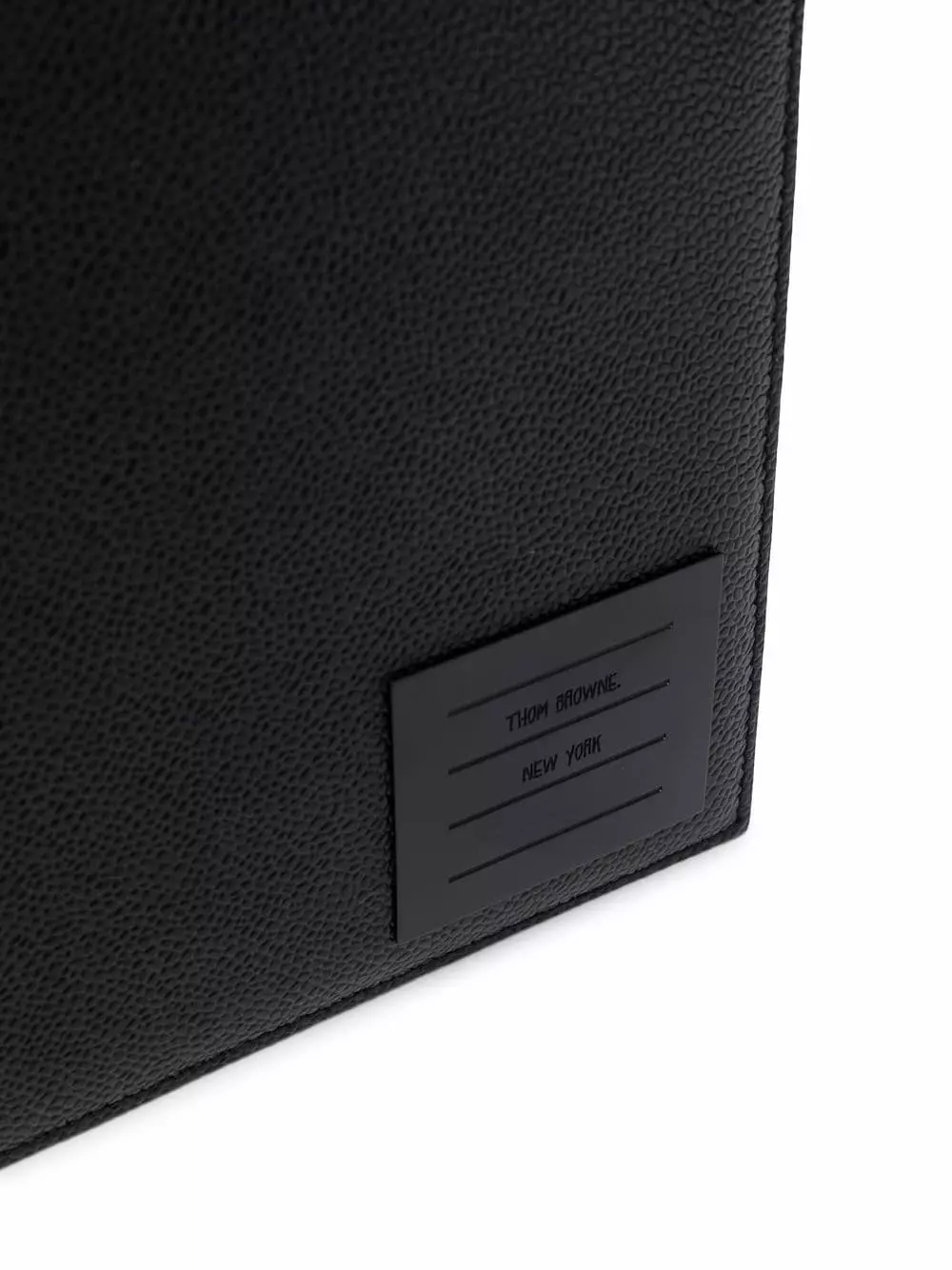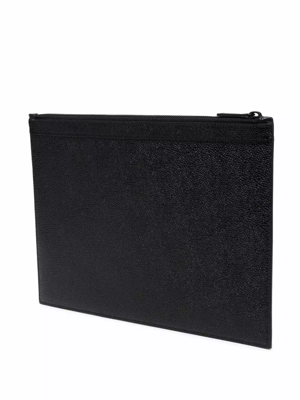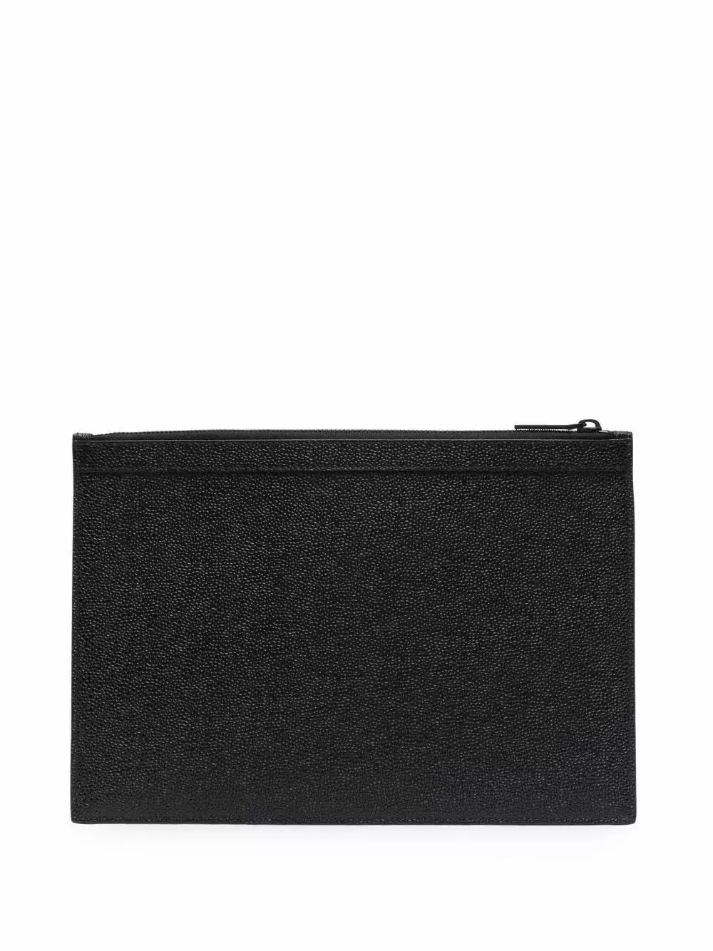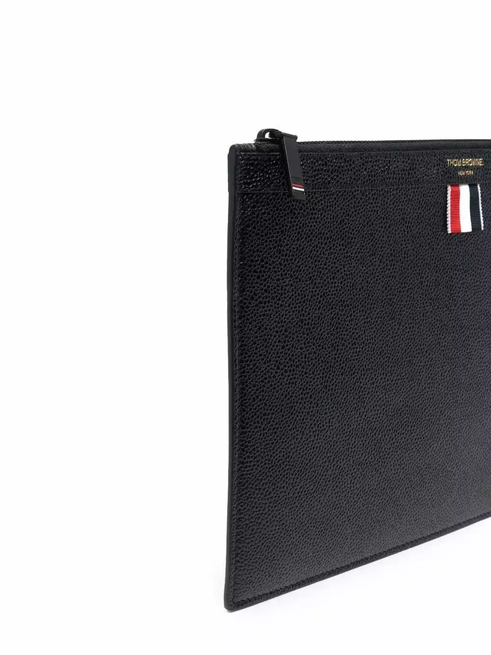 Crafted from grainy leather as a testament to Thom Browne’s expert craftsmanship, this clutch bag is adorned with the iconic grosgrain loop tab and its interior is covered with the unmistakable RWB-stripe.