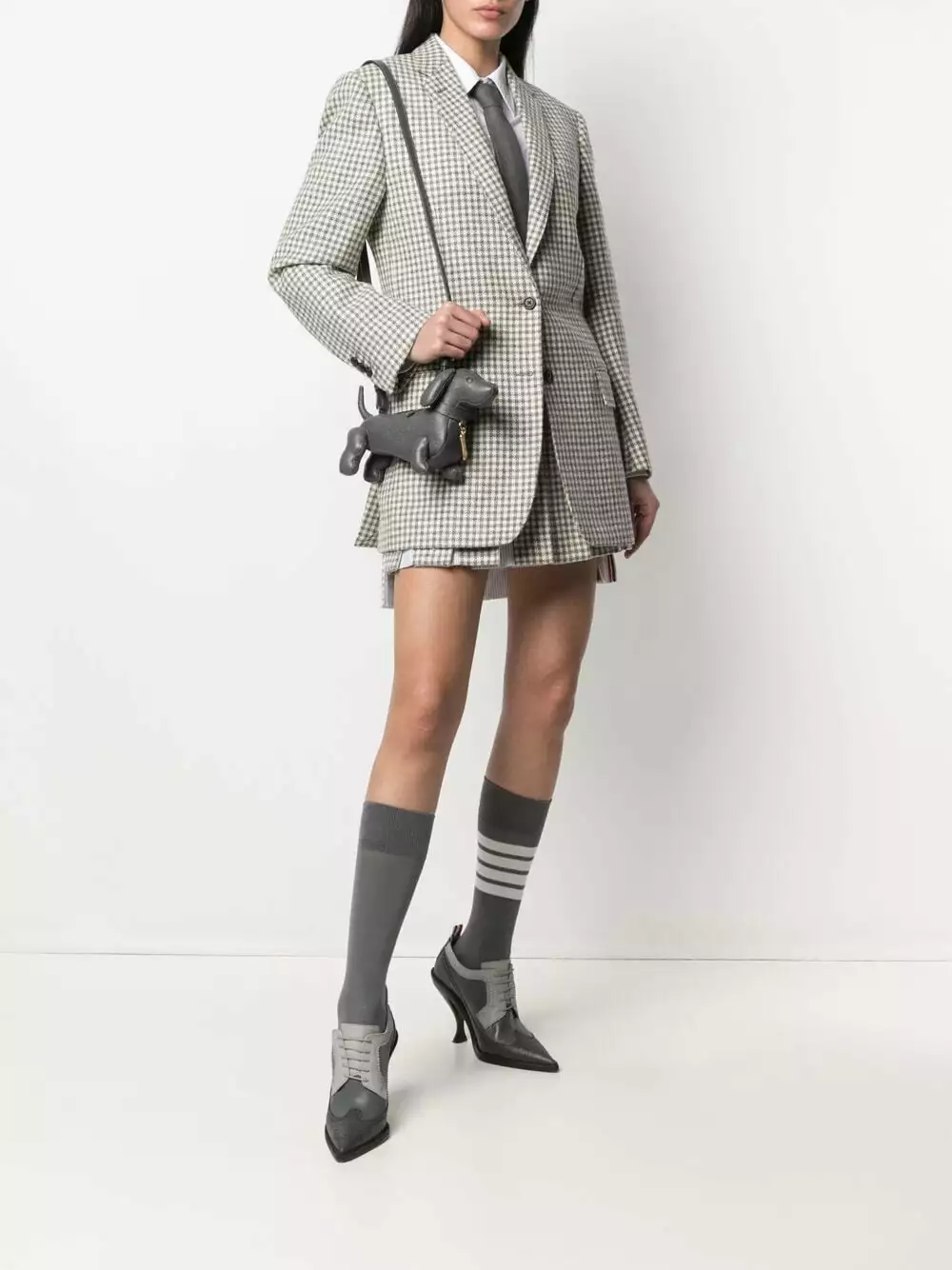 Thinking about tailoring your wardrobe in a smarter direction? Button up into Thom Browne’s Gunclub check tweed blazer and you’ll be serving formal charm in no time. Formal wear suits you very well.