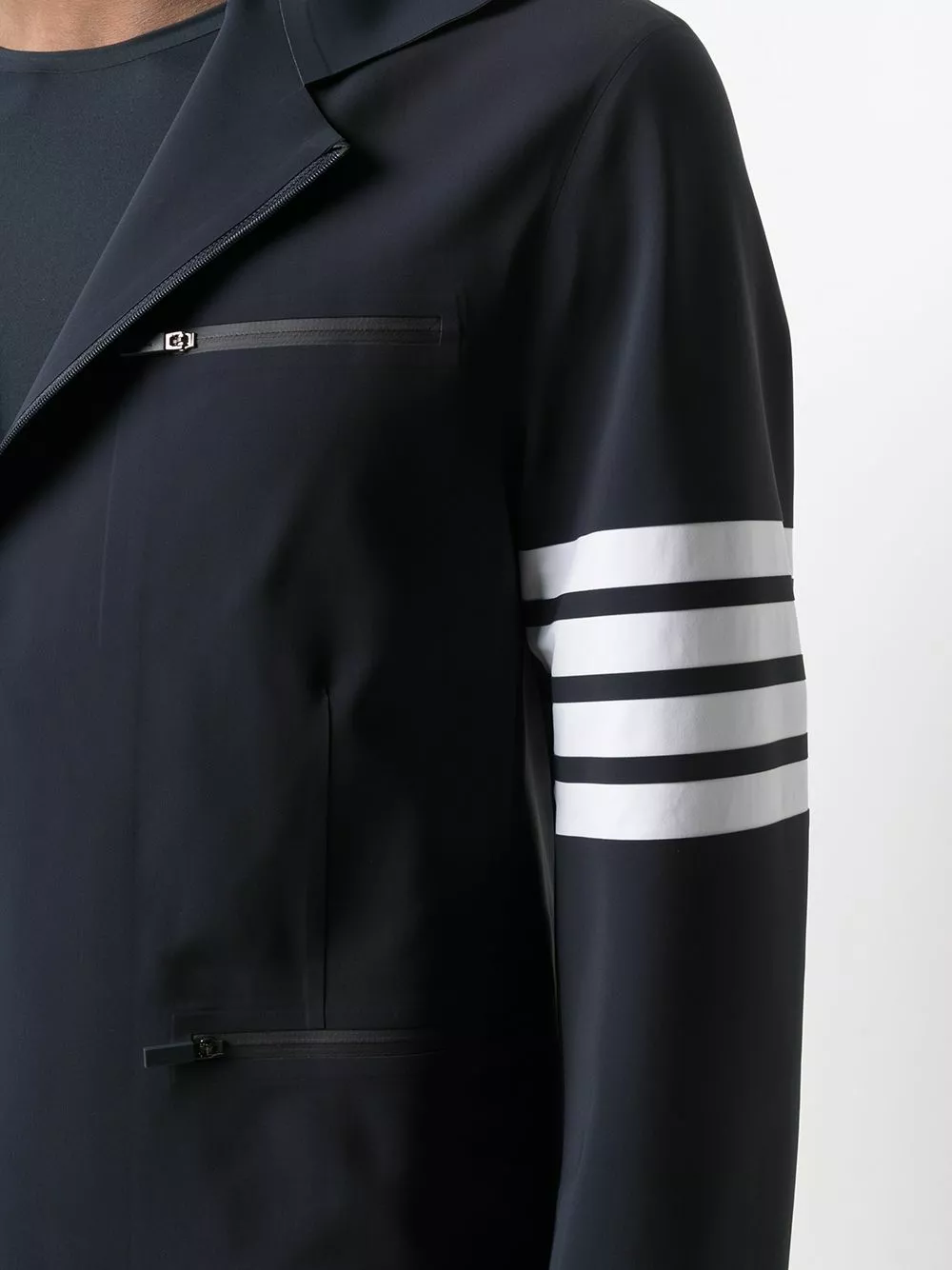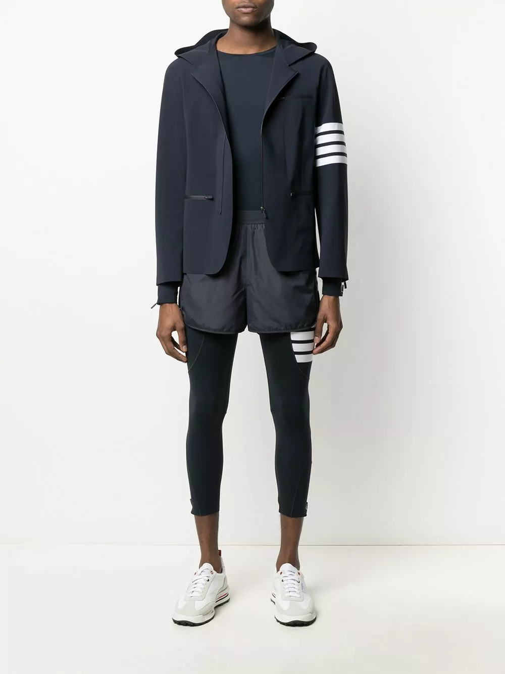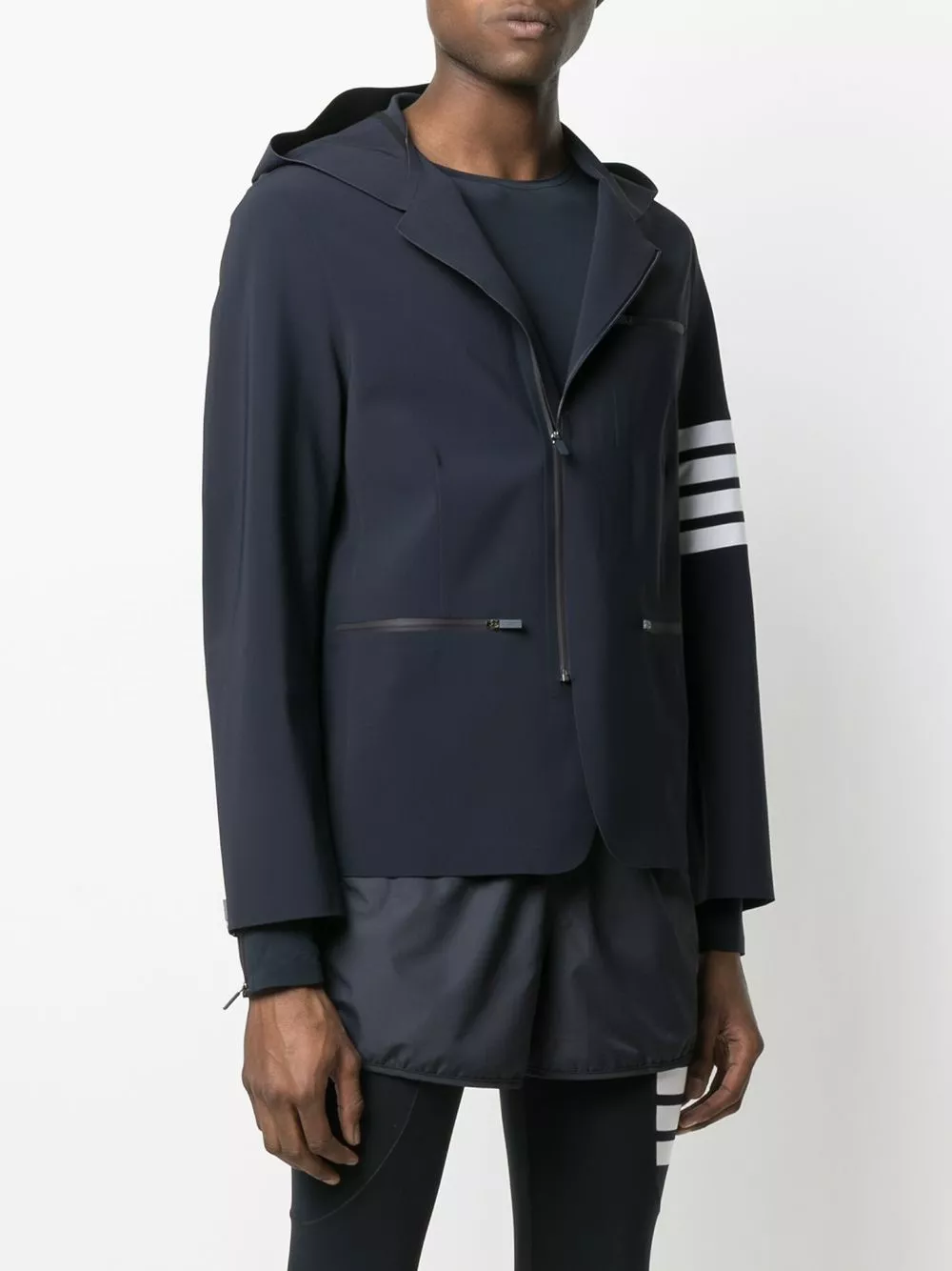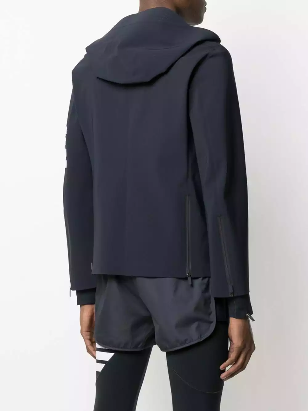 Gear up and get moving. This Thom Browne half-zip hooded performance jacket is ready to keep you feeling fresh even when you’re breaking a sweat during a workout. Lighten up and get physical with this jacket.