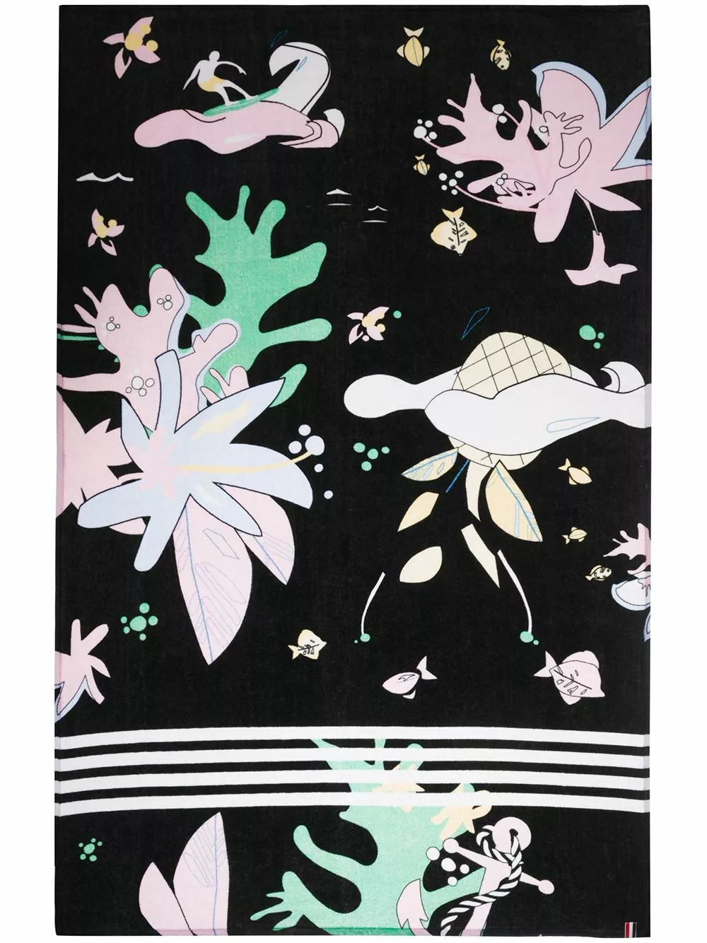 Whether you’re chilling at the poolside or off for a late-night dip in the sea, this Hawaiian-pattern cotton beach towel from Thom Browne is ready to roll.