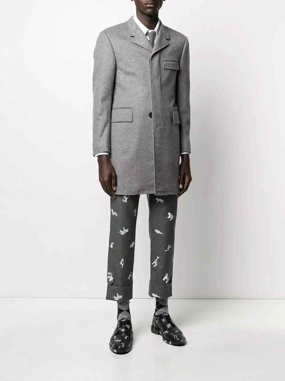A good wardrobe is built from classics. And yours isn’t complete until you add this heavyweight cashmere Chesterfield overcoat from Thom Browne. Its minimal design will ensure that it transcends passing trends – so it will remain in your possession for years to come. Featuring front flap pockets, a concealed fastening, notched lapels, cropped sleeves and a mid-length.