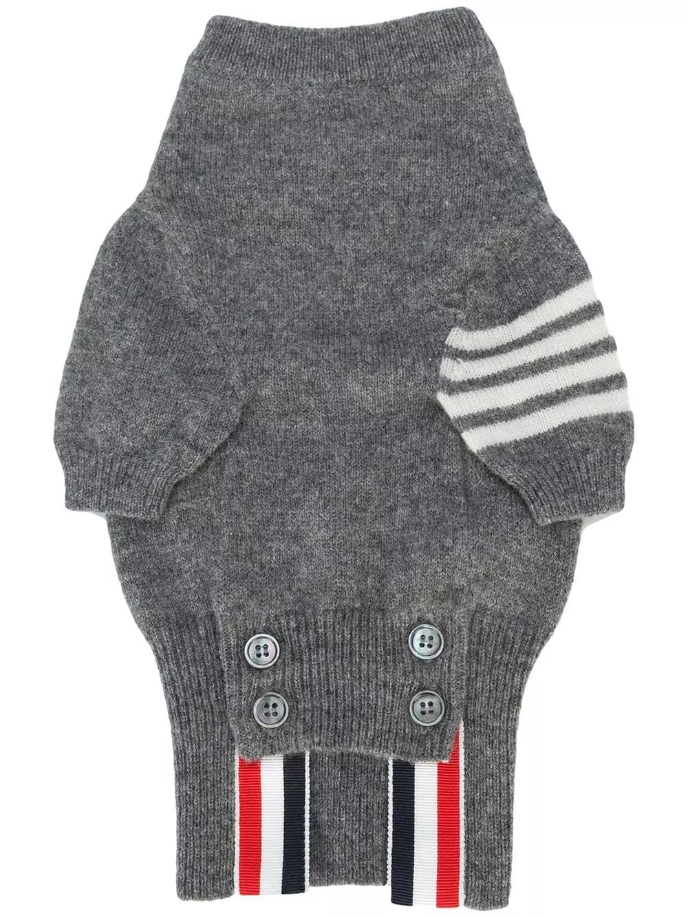 Give your four-legged friend all he deserves. Constructed from grey cashmere and boasting Thom Browne’s iconic features, this canine jumper will leave the other dogs in the park jealous. Auf Auf. Featuring a knitted style, a round neck, long sleeves, a ribbed hem and cuffs, a signature 4-Bar detail to the left sleeve and a signature RWB stripe.