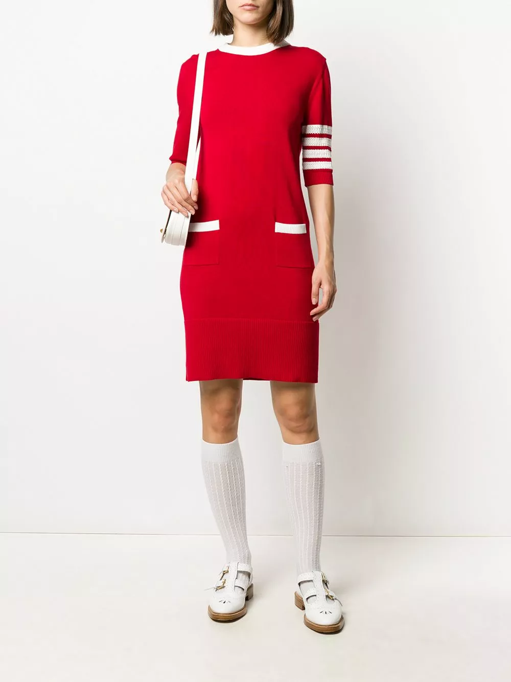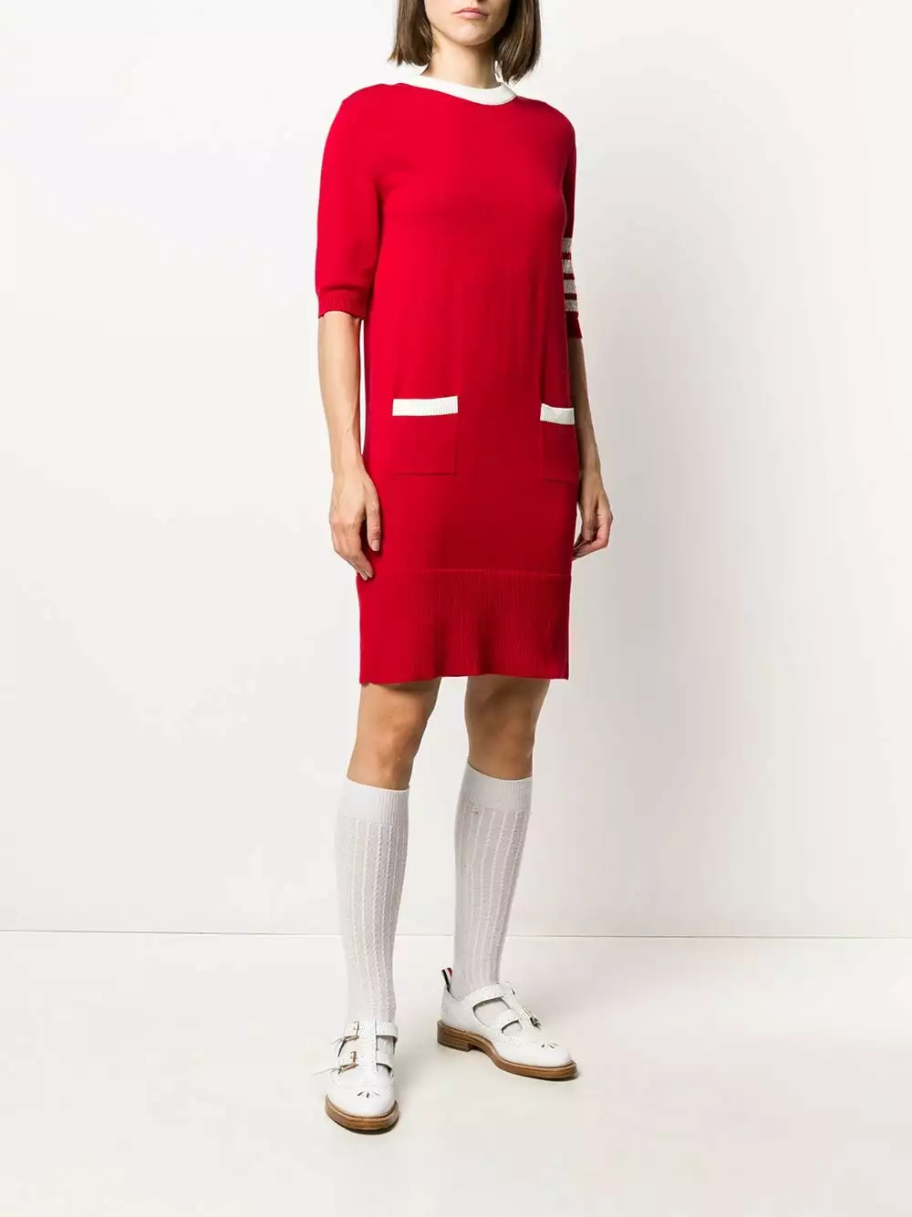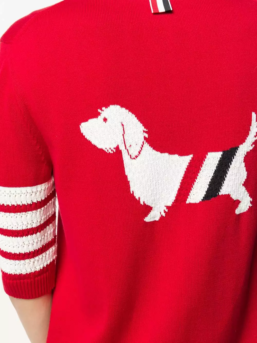 Where would we be without man’s best friend? With an adorable Hector motif design, this jumper dress from Thom Browne ensures you never have to be apart for your beloved pooch. What a loyal companion. Featuring a ribbed hem and cuffs, a stripe detail to the side, a round neck, short sleeves, patch pockets and a Hector motif to the back.