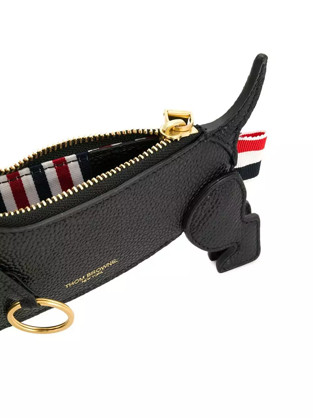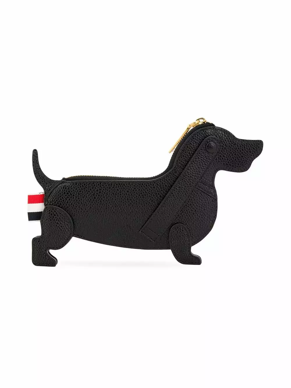 Since its launch in 2003, Thom Browne’s namesake label has gained notoriety for its clean designs and use of luxury materials. This black leather pebbled leather Hector belt purse from Thom Browne features gold-tone hardware, a top zip closure, a wristlet strap, a keyring strap detail, a striped lining and a signature tri-stripe grosgrain logo tab.