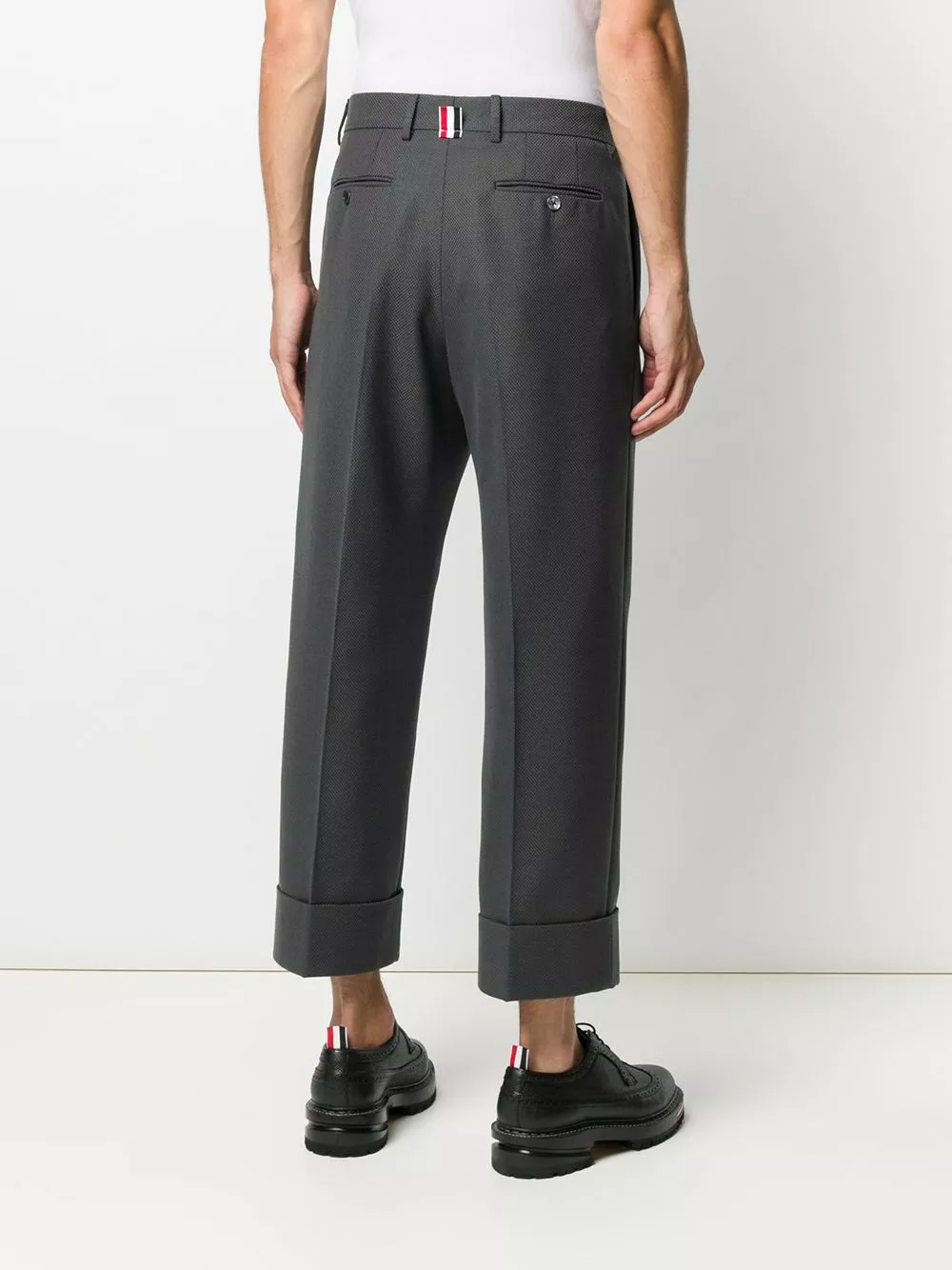 Have you been reminiscing about when things were a little bit simpler? Get a touch of back-in-the-day flavour through Thom Browne’s tailored designs. These trousers take us back to the days of school uniforms, and the memories are pouring in.