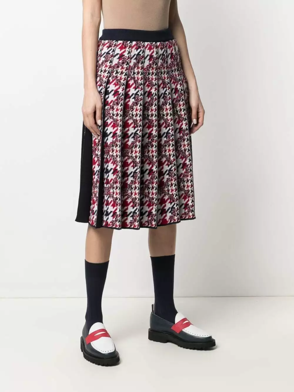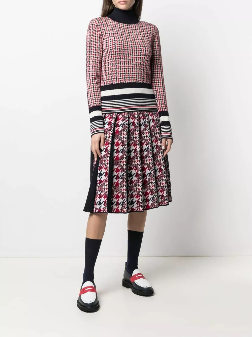 Great style? It’s as easy as one, two, three. All that you need to do is slip on this houndstooth-pattern skirt from Thom Browne.