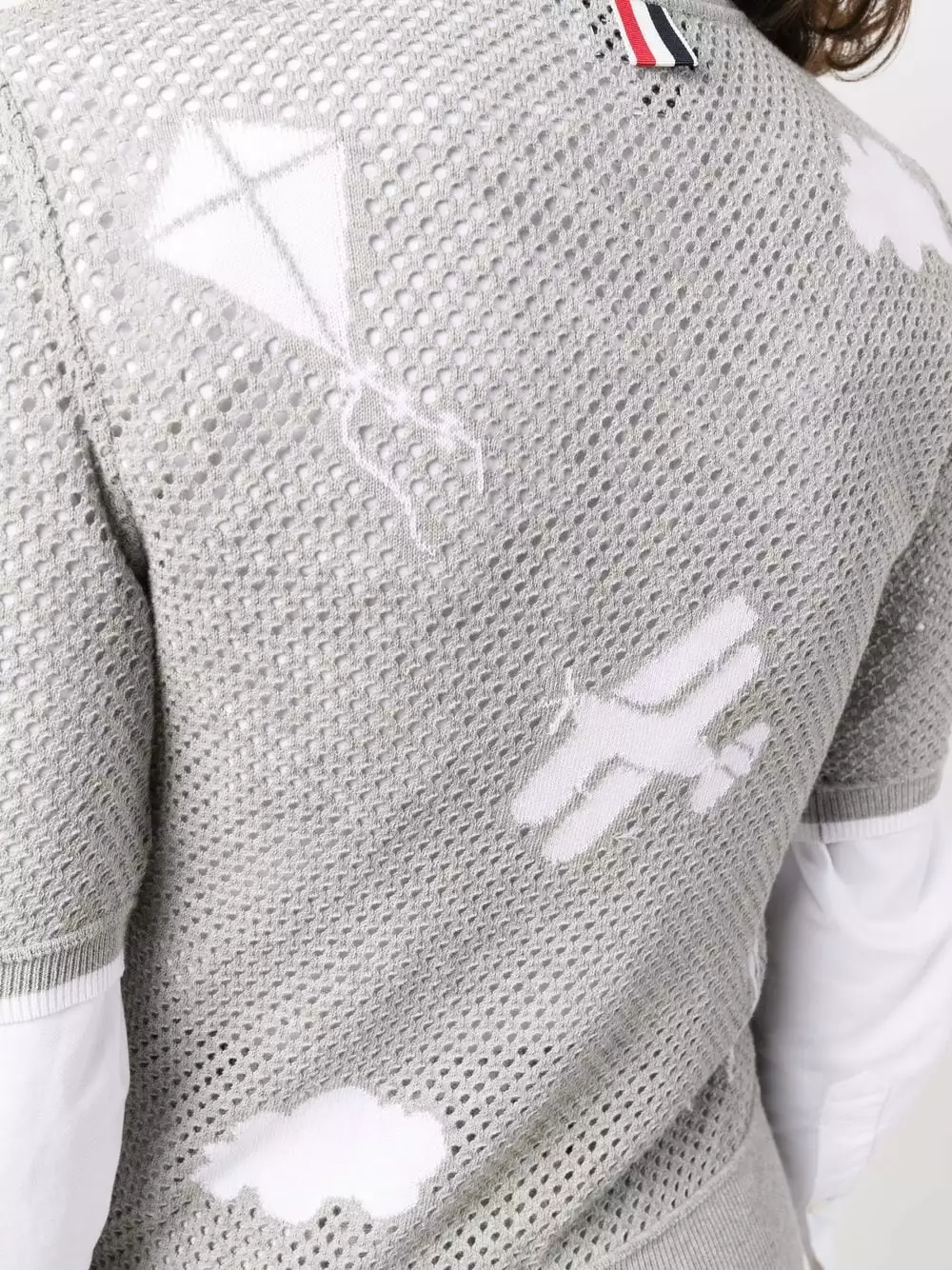 Since the label’s launch in 2001, New York-based Thom Browne has continuously presented collections of tailored separates with a twist. A fine example is this T-shirt, which takes the traditional short-sleeve silhouette and updates it with intarsia-knit motifs atop the breathable mesh design for a contemporary take on a classic.