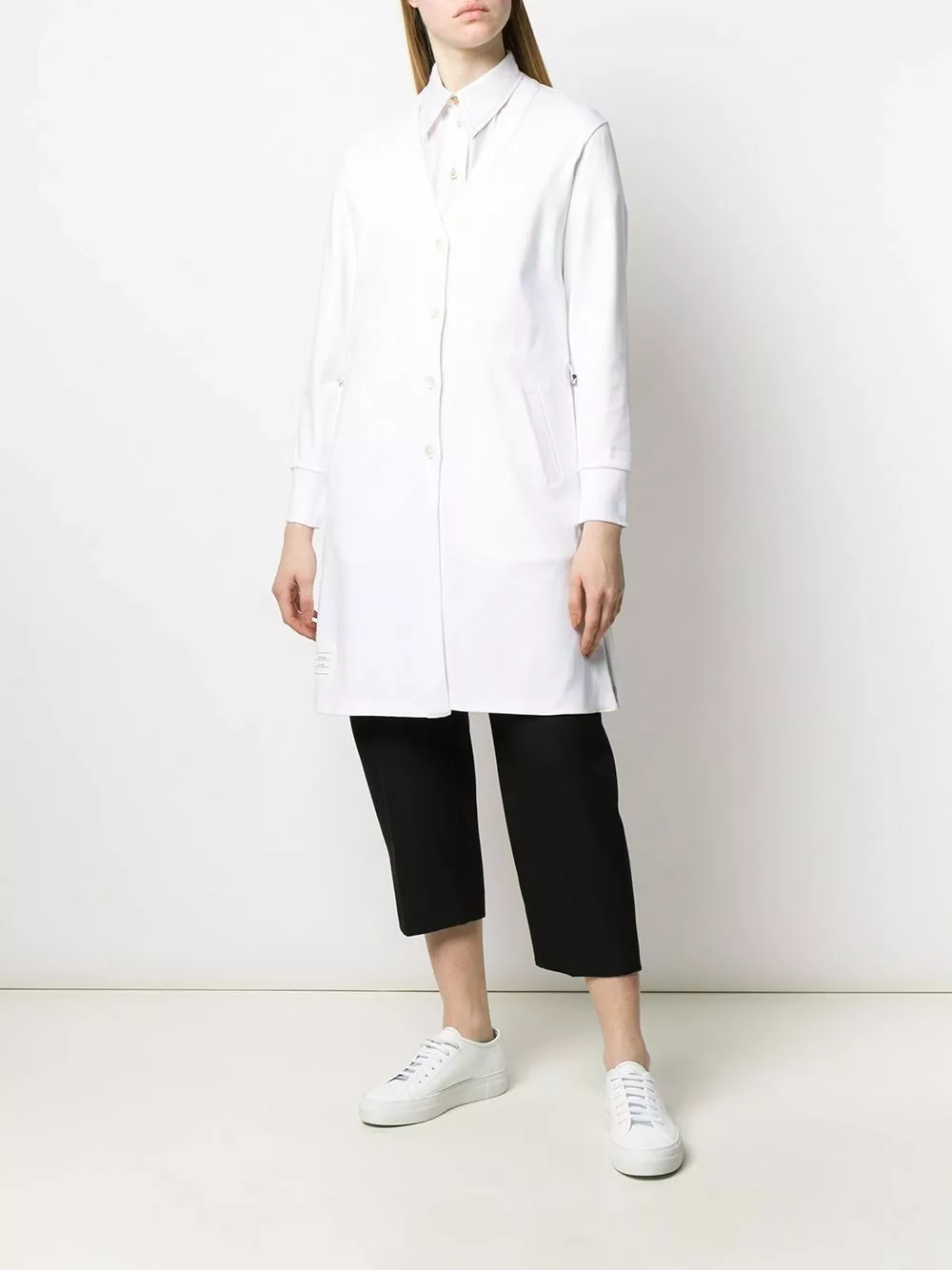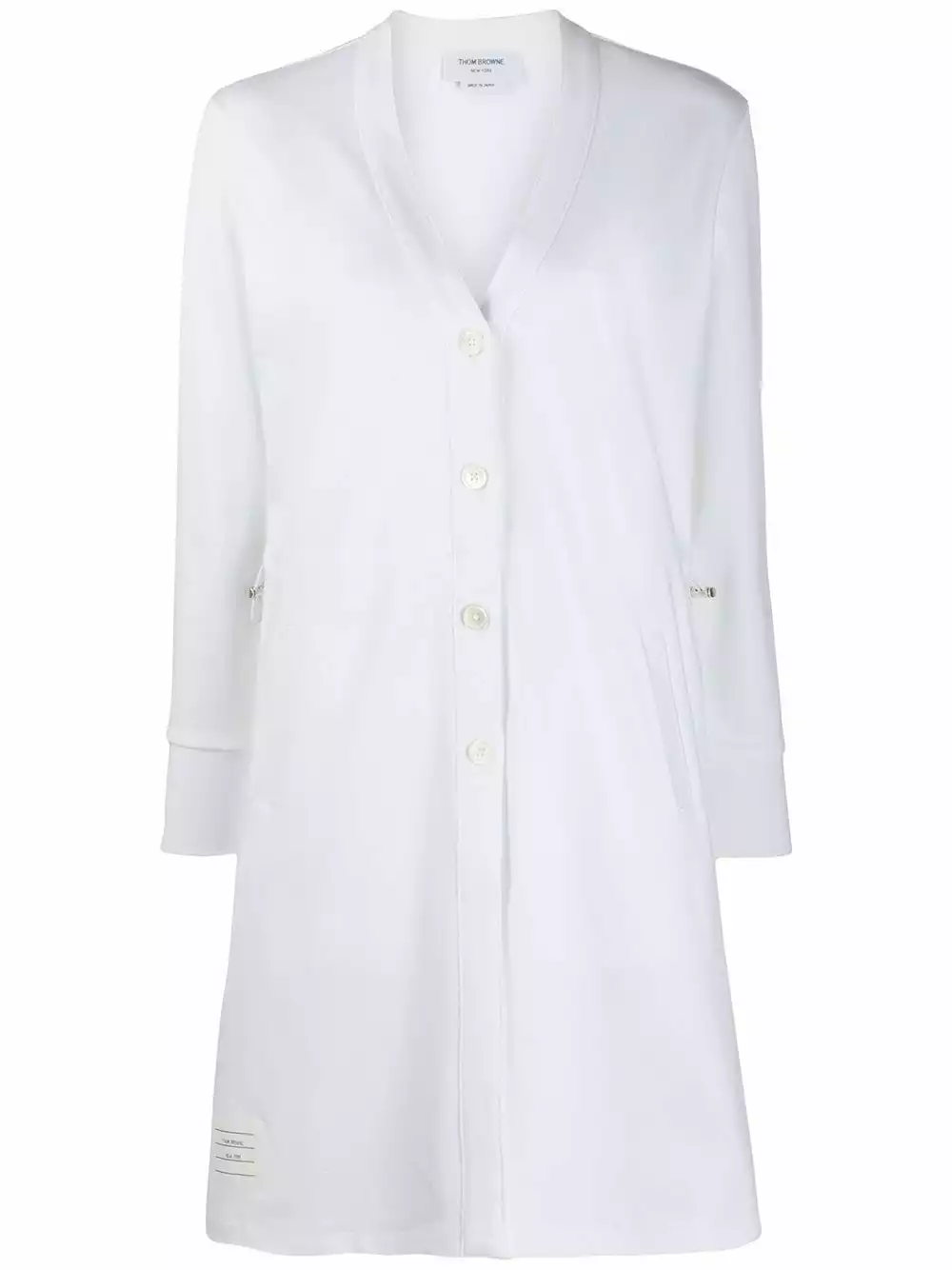 The regular cardigan just got an upgrade… Boasting a cotton construction, this interlock drawcord waist v-neck cardigan from Thom Browne is the piece that you’ll want to have in your wardrobe, suitable for any occasion. Update your classics. Featuring a v-neck, a front button fastening, long sleeves, a drawstring fastening, side seam pockets, side slits and a front logo patch.