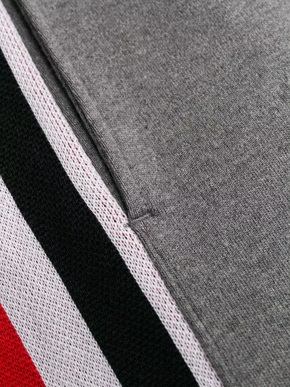Thom Browne’s newest edit captures the immaculate craftsmanship and minimalist designs that have come to define the American label, as seen with these interlock RWB stripe shorts. Crafted from medium grey cotton, they feature an elasticated drawstring waist, appliqué stripes at the sides, a signature three stripe detail, side slit pockets and a knee length.